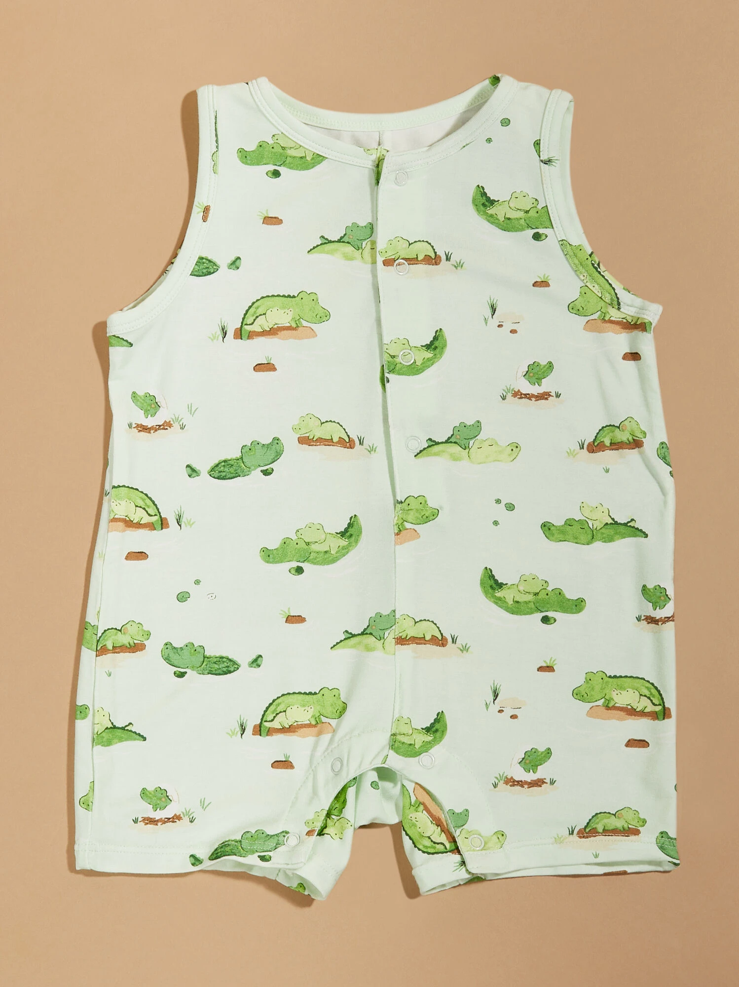 This cozy jumper features an alligator print, ideal for your little one’s everyday adventures. With convenient snap closures, dressing your baby becomes hassle-free, while the buttery soft material from bamboo provides ultimate comfort and breathability during playtime.