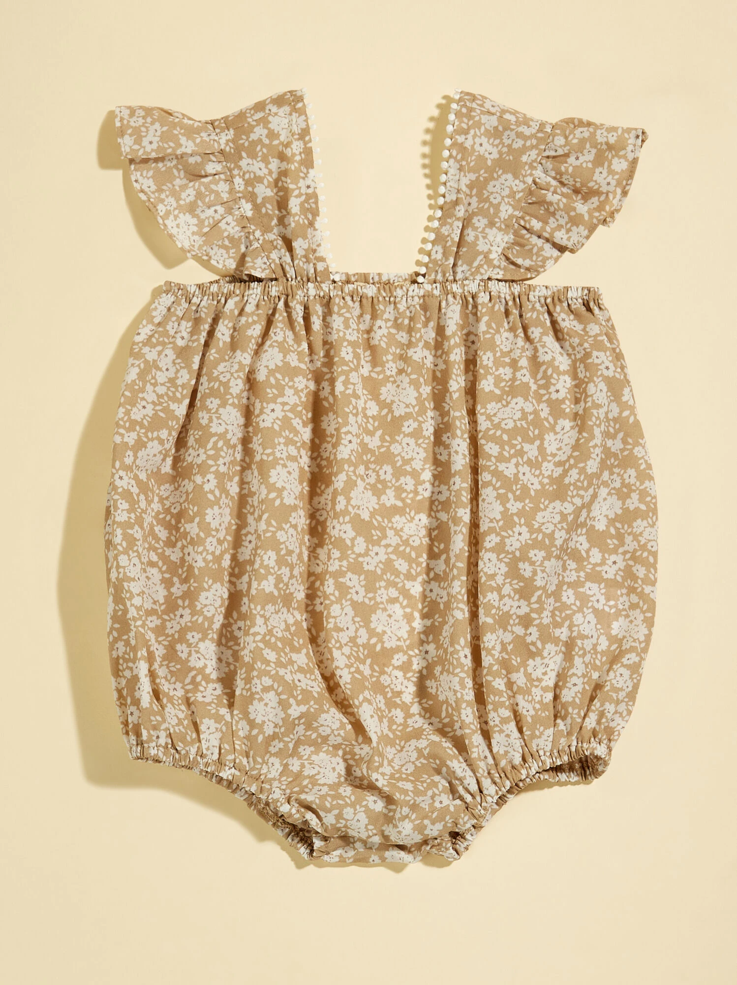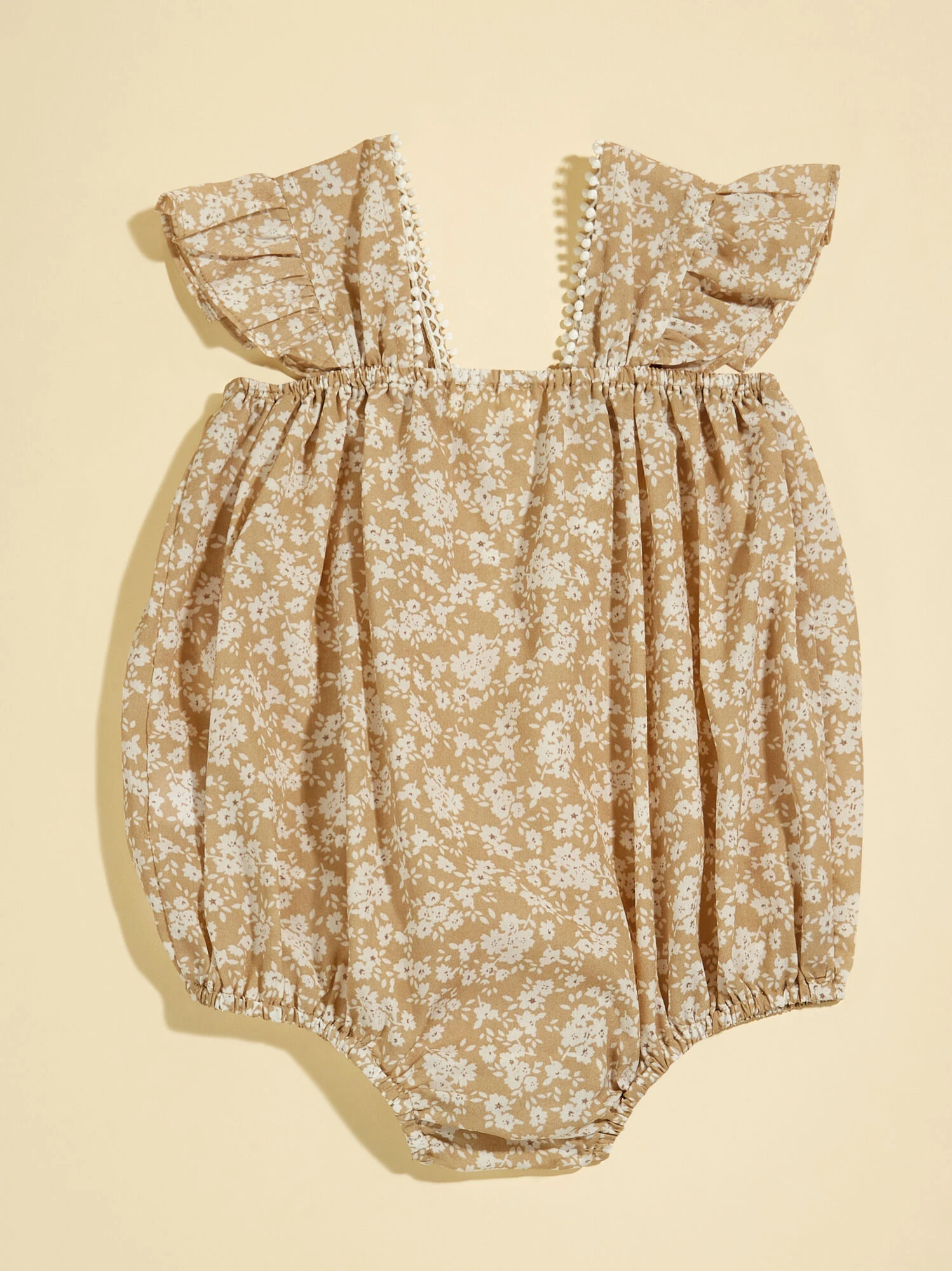 This lightweight bubble is an easy one piece style perfect for on-the-go outings with your babe. The ruffle sleeves and lace dot trim offer a sweet elegant style while the elastic neckline and leg holes offer an easy stretch for your littles movement during play.