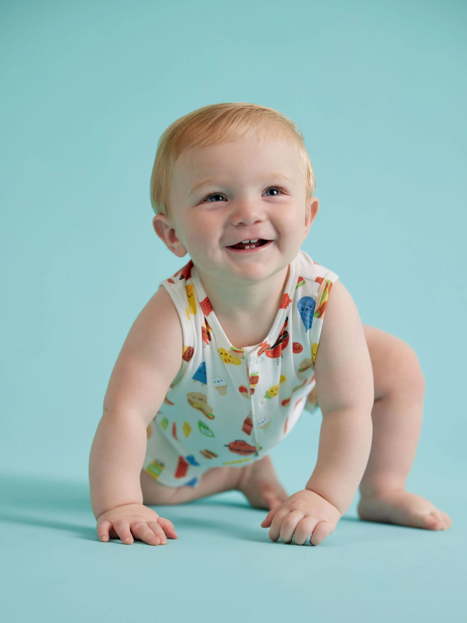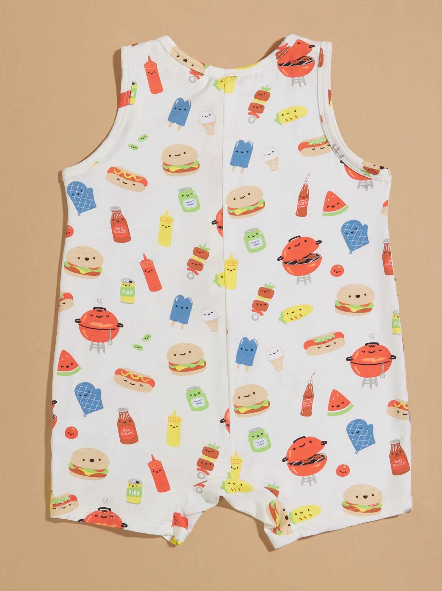 This lightweight one and done outfit features a barbeque inspired print, so cute for a summer cookout with your babe. With convenient snap closures, dressing your baby becomes hassle-free, while the buttery soft material from bamboo provides ultimate comfort and breathability during playtime.