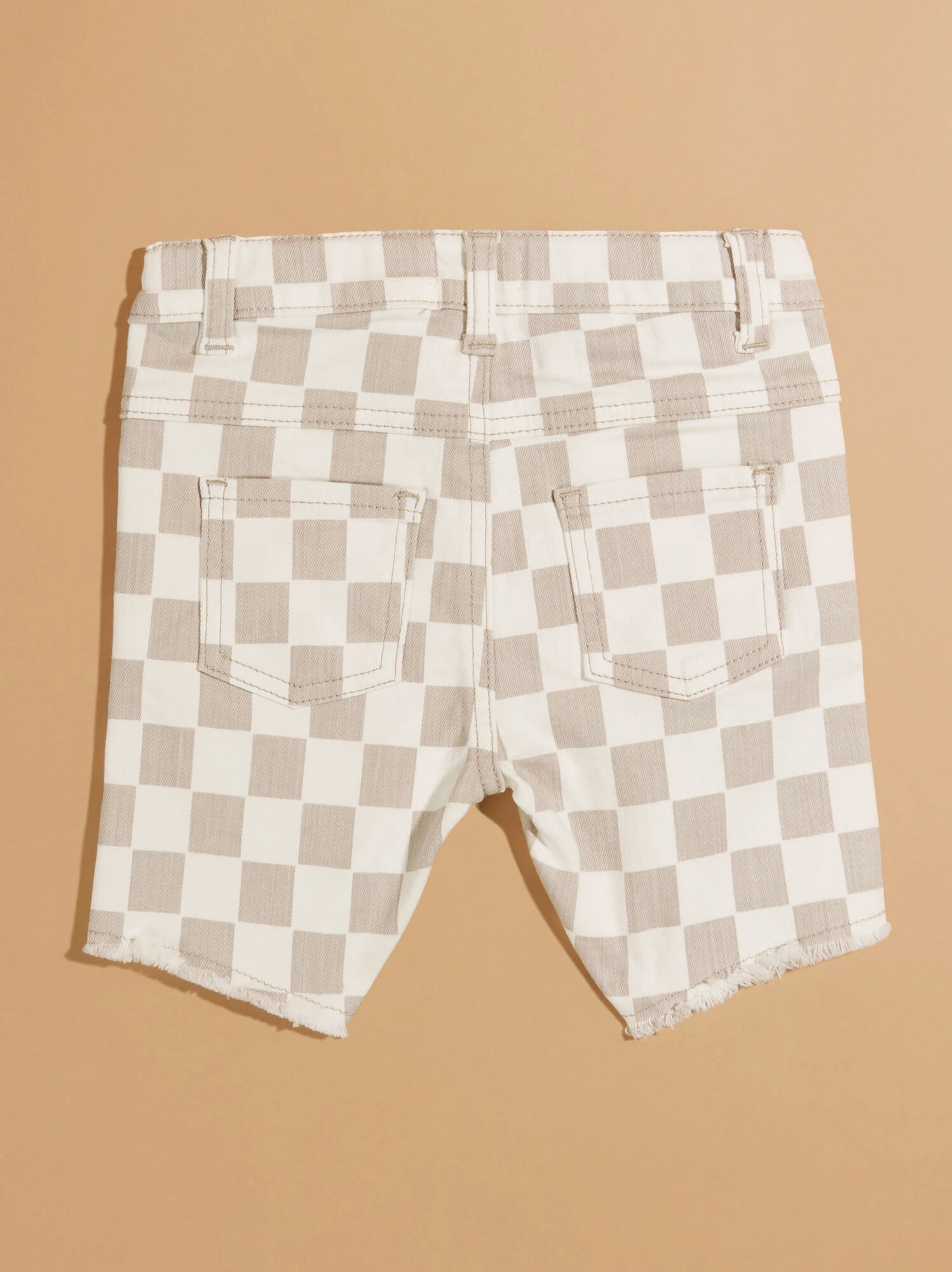 These adorable denim shorts add a retro touch to your boy’s look featuring a fringe hem and checkered pattern. With four pockets, these bottoms offer practicality for storing tiny essentials, while the button and zipper closure ensures a secure and comfortable fit.