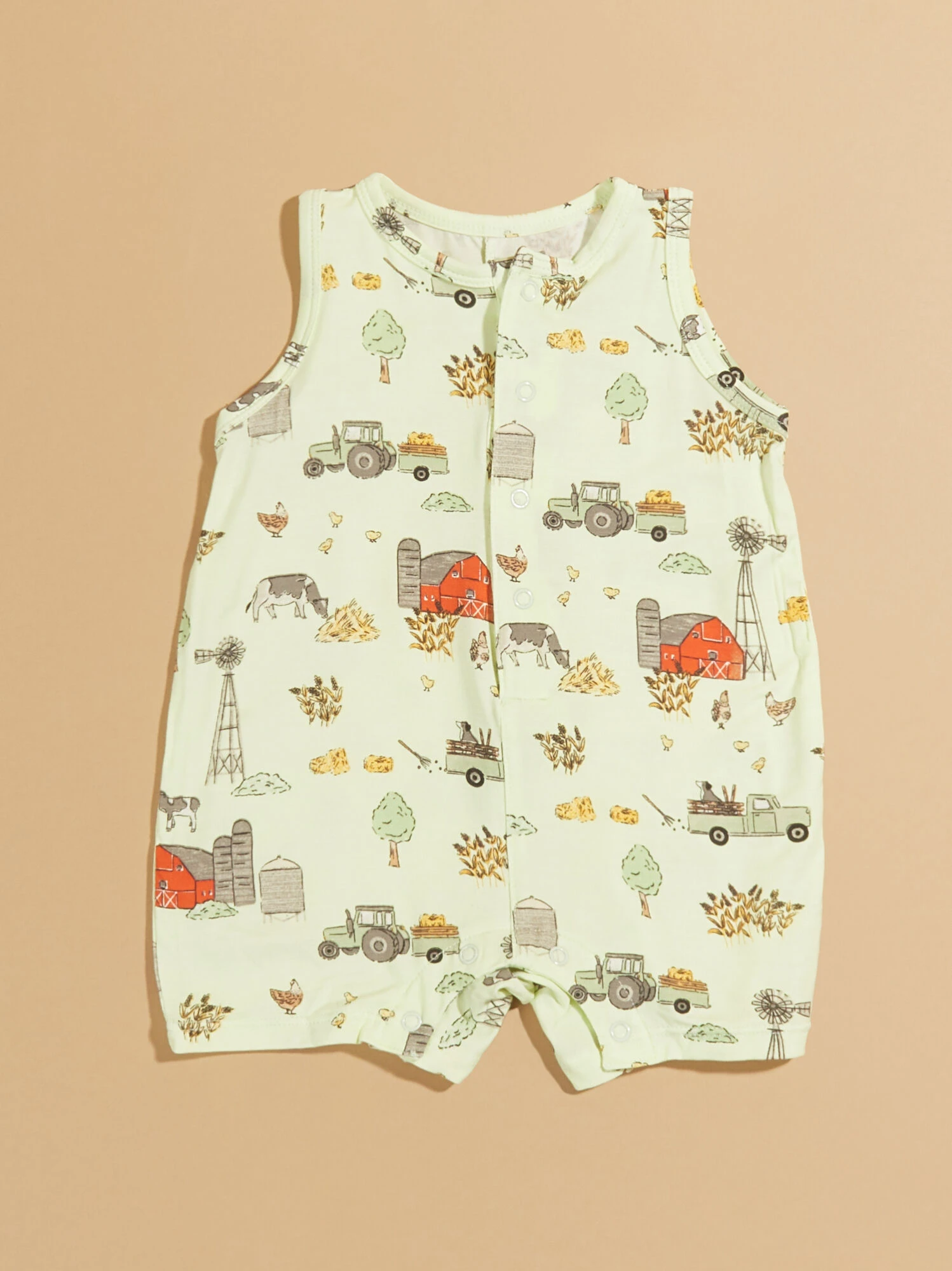 This lightweight one and done outfit features a farm inspired print, so cute for your little one’s everyday adventures. With convenient snap closures, dressing your baby becomes hassle-free, while the buttery soft material from bamboo provides ultimate comfort and breathability during playtime.