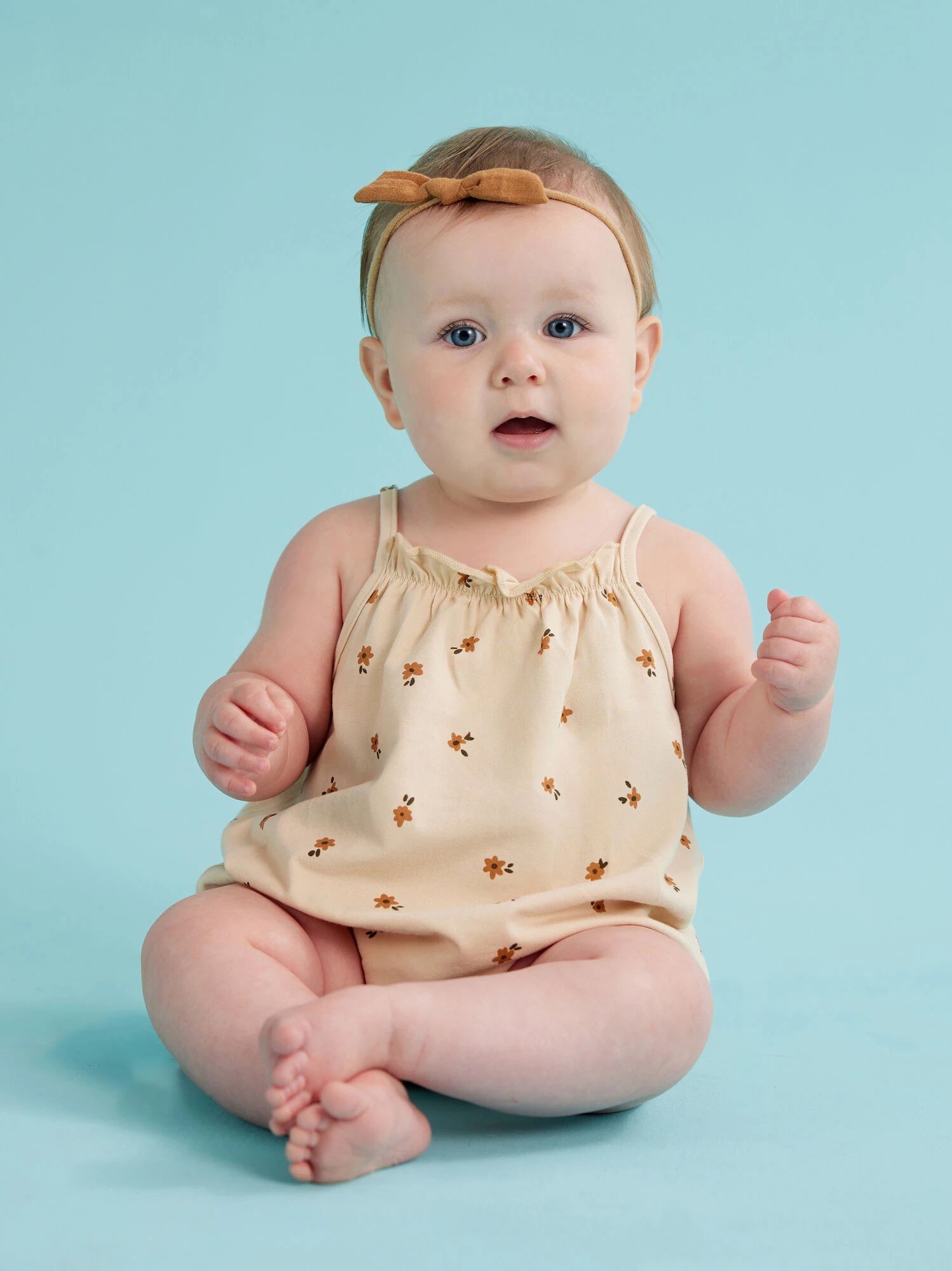 This super cute bubble featuring a charming ruffle neckline and delicate floral print, is designed to make your little one look adorable for an outing with mama. The elastic leg openings allow an easy stretch for effortless dressing, while the buttery soft material ensures all day comfort for your girl.