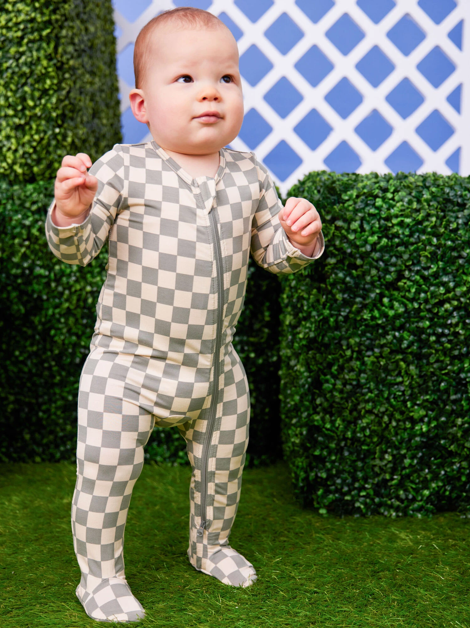Designed for your baby’s ultimate comfort, this footie is crafted from a buttery soft, eco-friendly bamboo material offering a lightweight, breathable feel for bedtime. The two-way zipper and non-slip foot grippers meet all the practical needs, while the checkered print adds a retro flare.