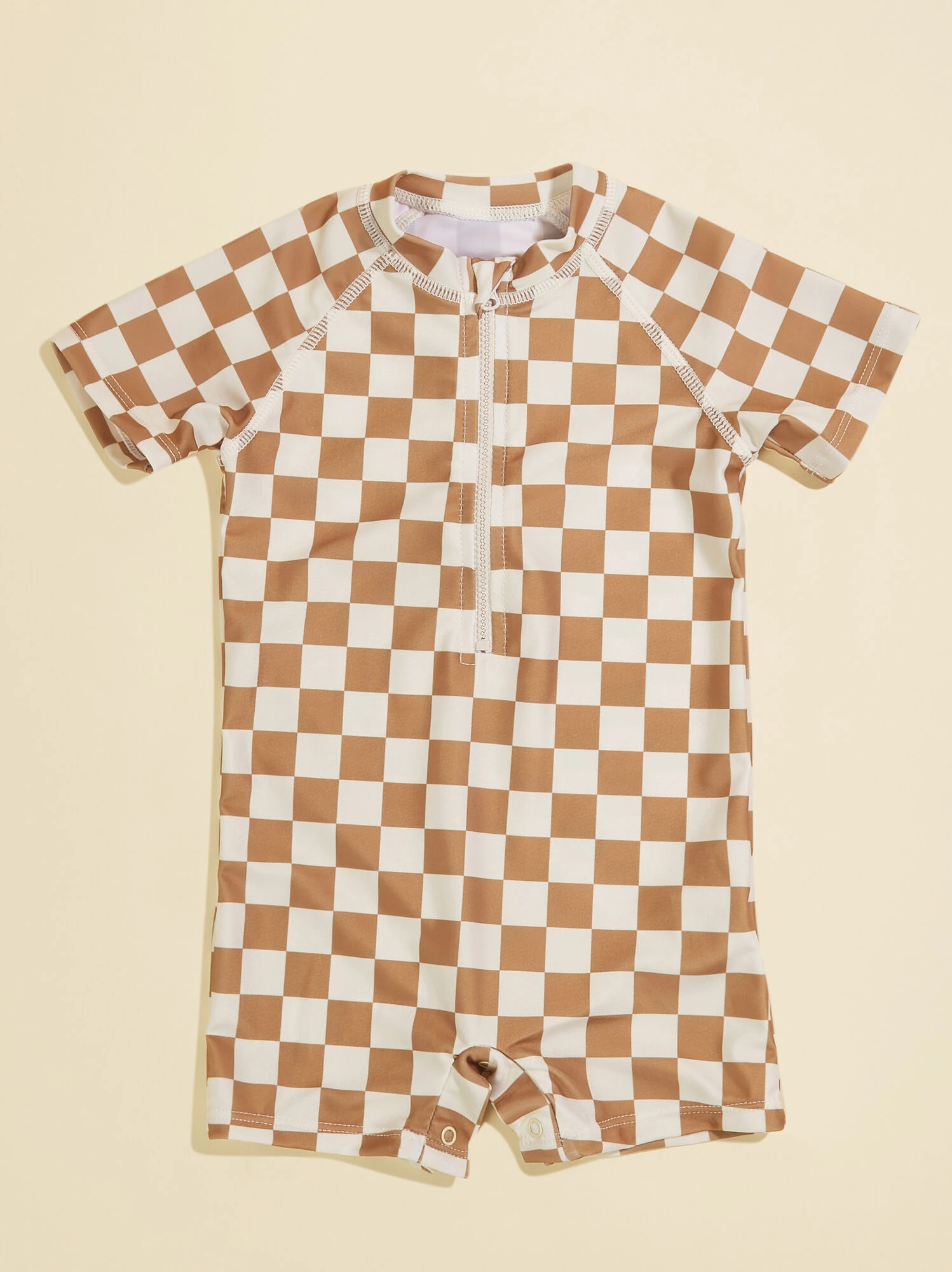 Featuring a checkered print for a retro look with a front zip design, this swimsuit is beach trip must for your little one. The buttery smooth material offers a soft stretch for maximum comfort and easy movement for endless fun during any summer swim activities.