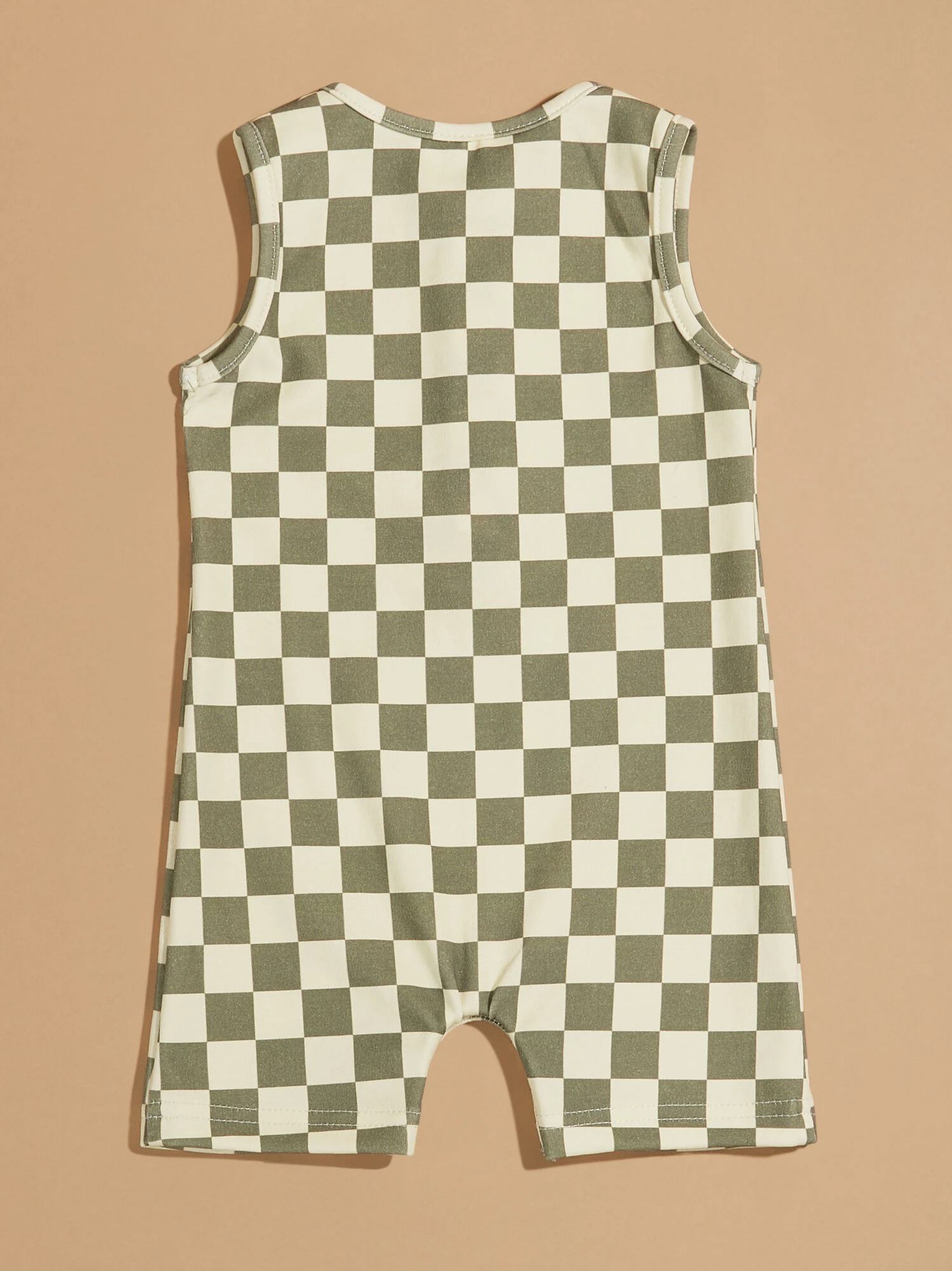 The perfect pick for busy days with your boy, this all in one outfit provides the cutest style with a retro checkered print, while the soft material offers ease and stretch for active littles. The wooden buttons along the neckline adds an extra style detail while ensuring easy dressing with the inseam snaps.