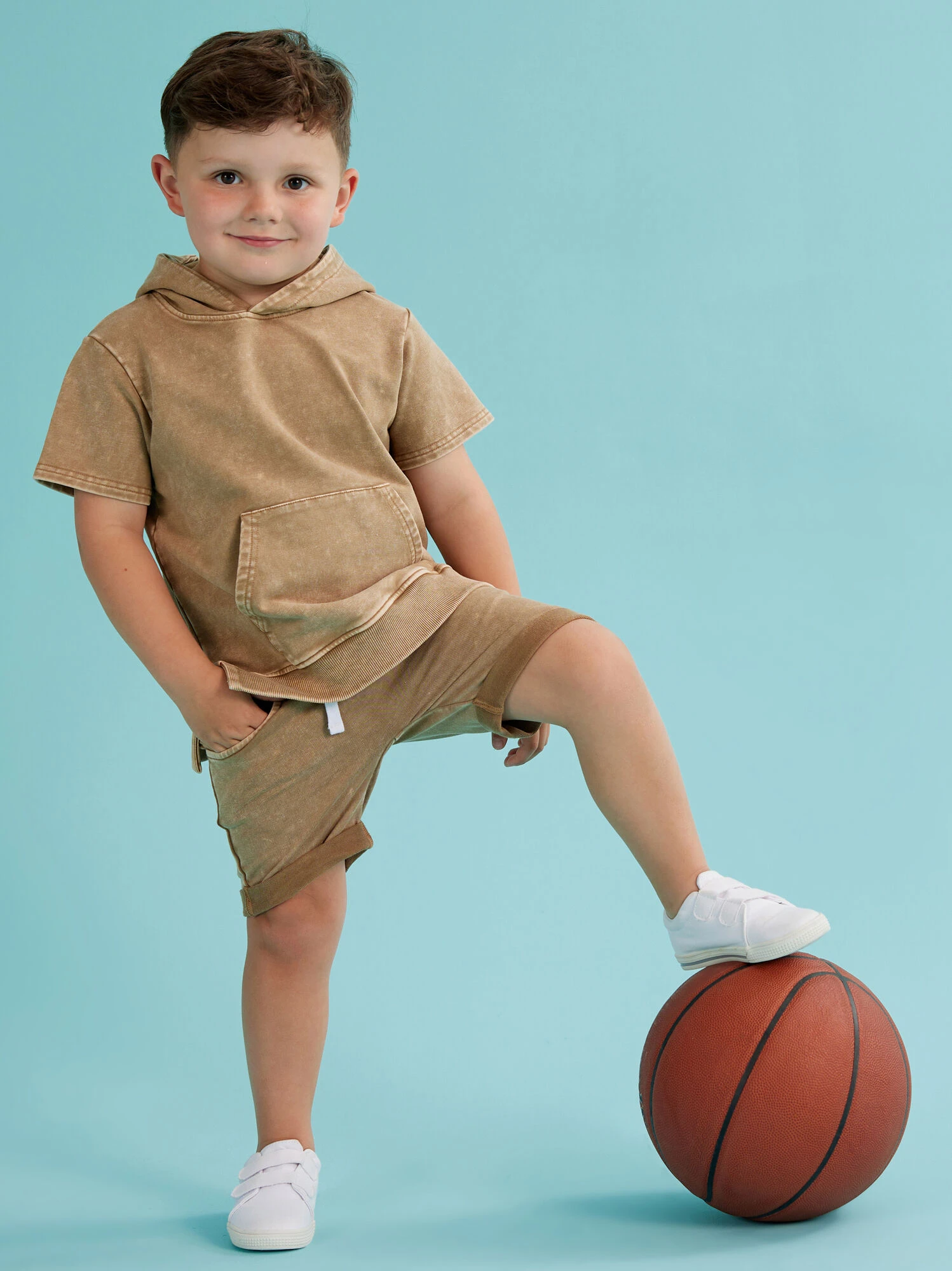 Take your boy’s style to the next level with this top bringing a new spin on an everyday tee with the hoodie design and washed fabrication. The oversized fit and soft sweatshirt material provide maximum comfort, while the ribbed hem and small side slits add an effortless finish.