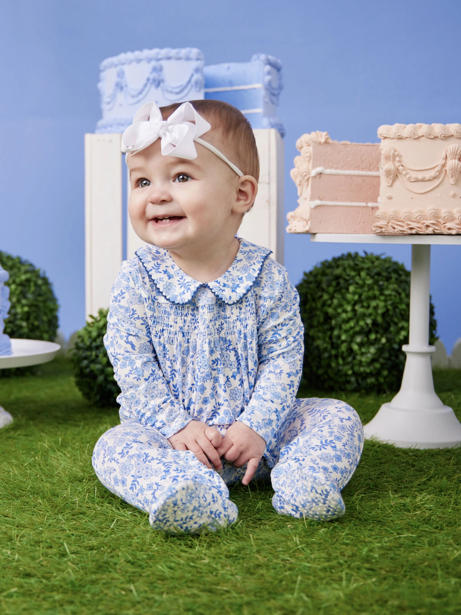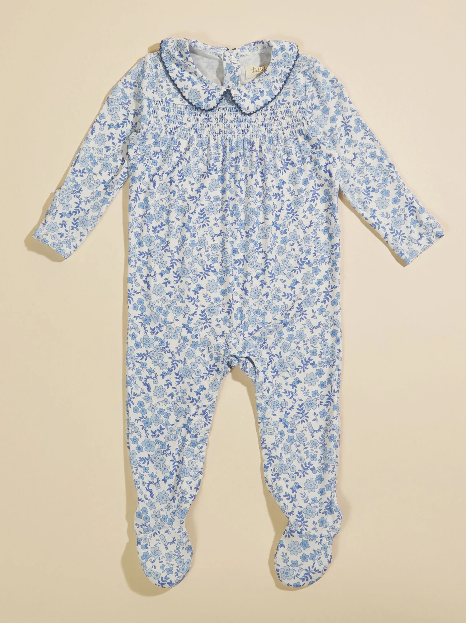 With a timeless, vintage look, this footie brings a sweet, dainty floral look to bedtime for your babe. The peter pan collar, smocked top, and buttery soft, bamboo material create a cute comfort, while the fold over hand cuffs protect your little from accidental scratches.
