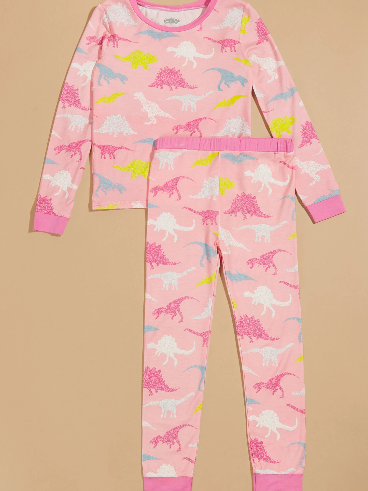 Ignite your littles imagination with this eco-friendly material made from bamboo in this adventurous dino pattern that glows in the dark! This set features a trim around the collar, hand cuffs, ankle cuffs, and a stretchy fabric to let your little be on the go.