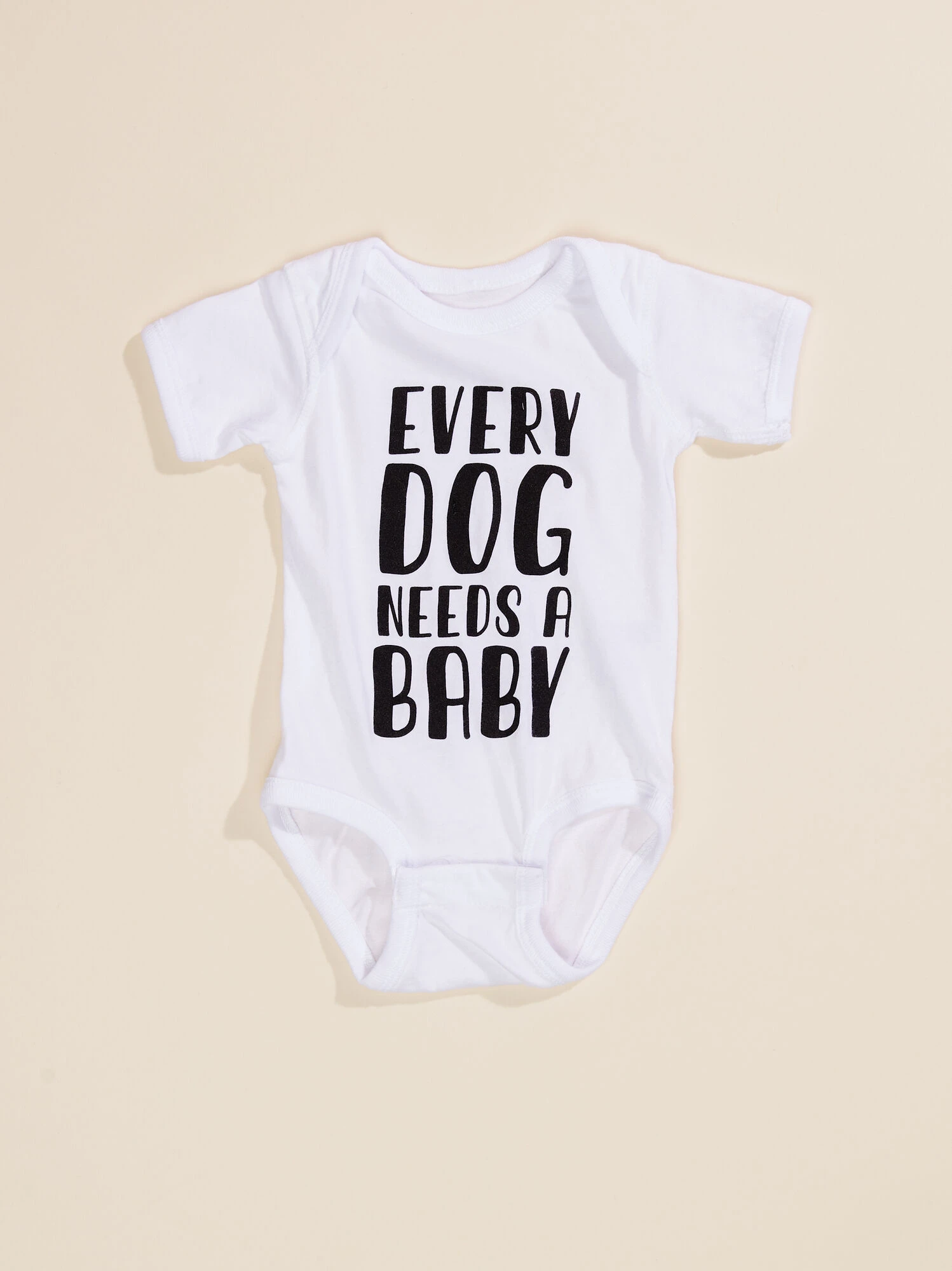 If anything is true, it’s that every dog needs a baby! This bodysuit is 100% cotton and so soft to the touch, your baby will love playing with their pup in this outfit!