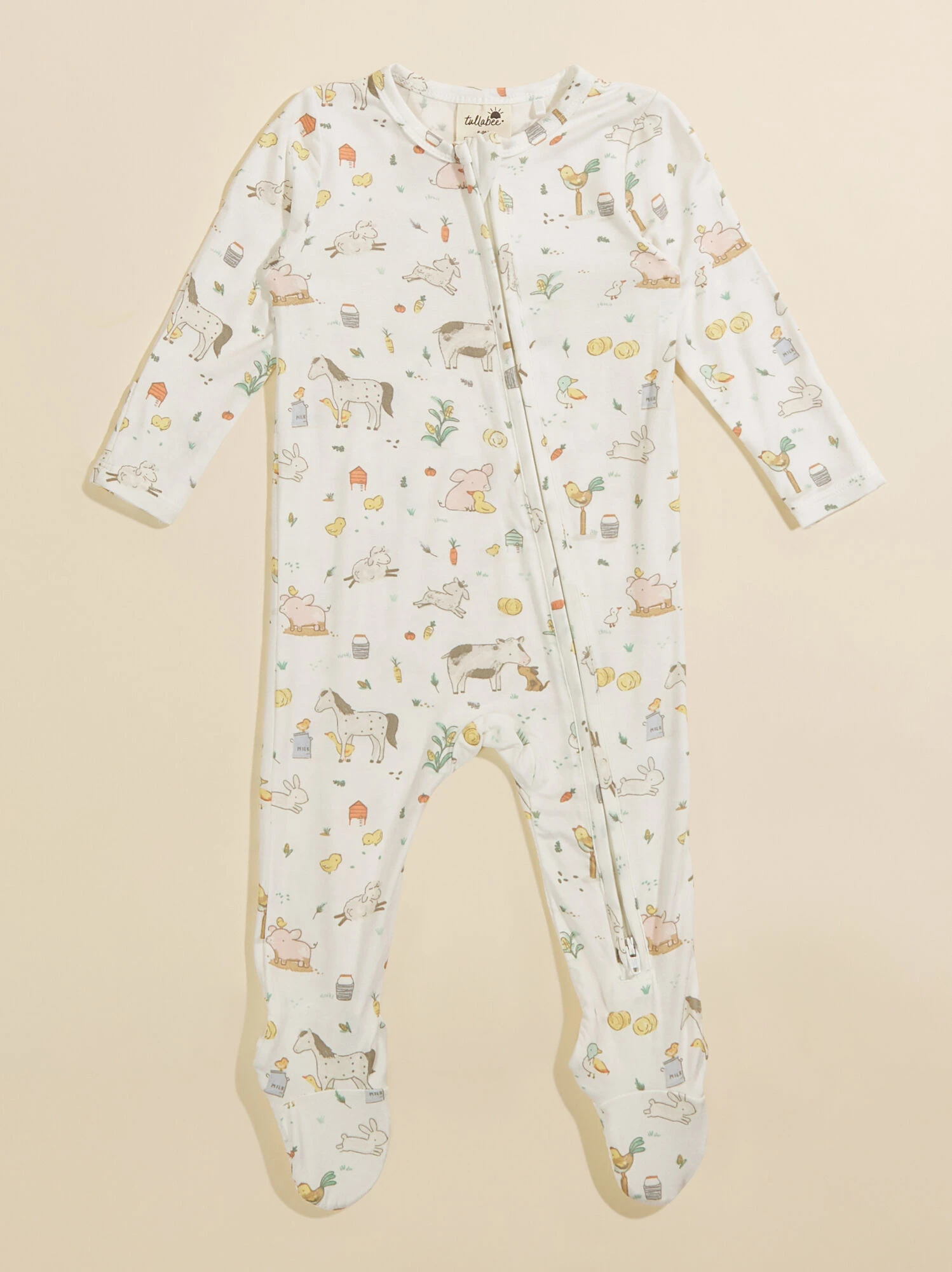 Dress your babe in soft comfort for bedtime with this farm animal print footie made from eco-friendly bamboo material to provide a lightweight, breathable feel. The fold over hand cuffs, non-slip foot grips, and two-way zipper meet all the practical needs of you and your mini.