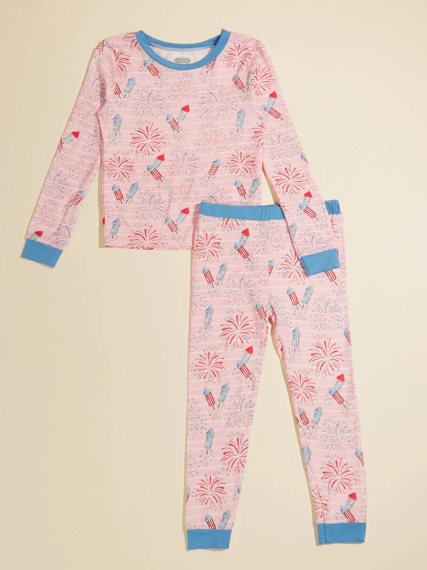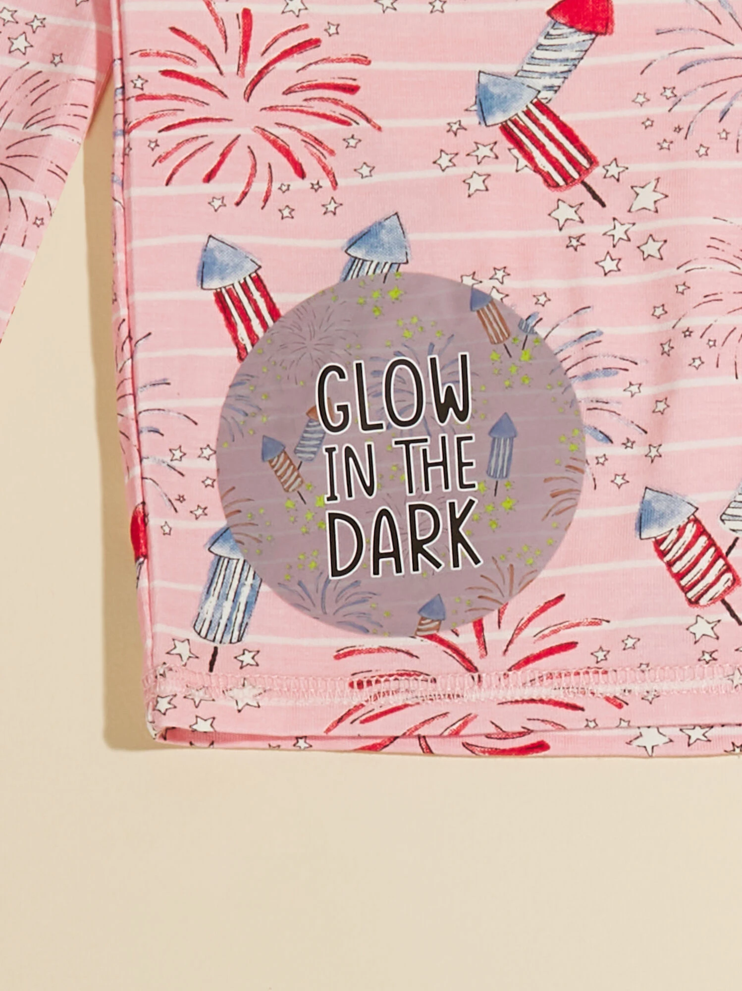 Add some festive fun to your little’s Fourth of July celebration with this eco-friendly bamboo lounge set, featuring a dazzling fireworks print that glows in the dark! Crafted with sustainability in mind, this cozy set not only radiates patriotic charm but also offers a touch of magic as it lights up.