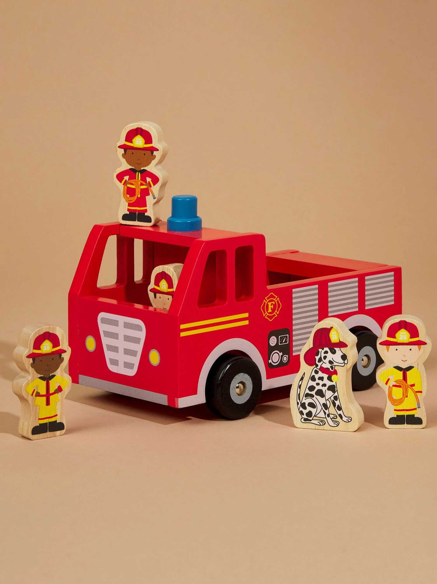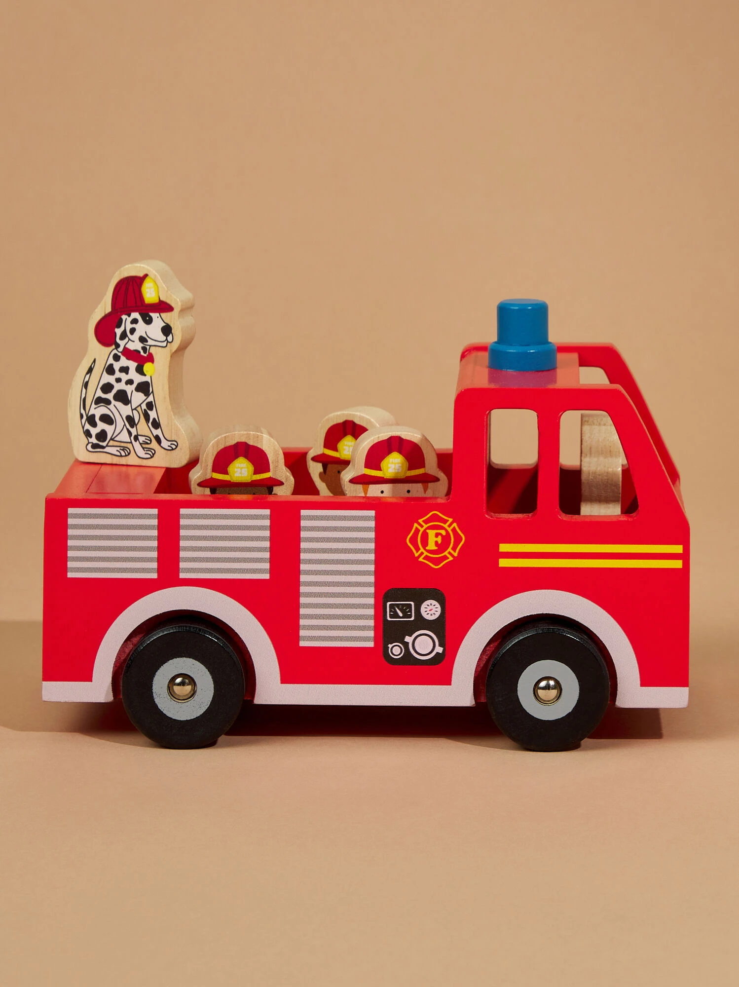 Introducing our thrilling firetruck play set, where little heroes can ignite their imaginations and save the day! This wooden set includes a firetruck with movable parts including a ladder that can be raised and lowered and five firefighter figures. With this toy your little will create rescue missions and become heroes to all.