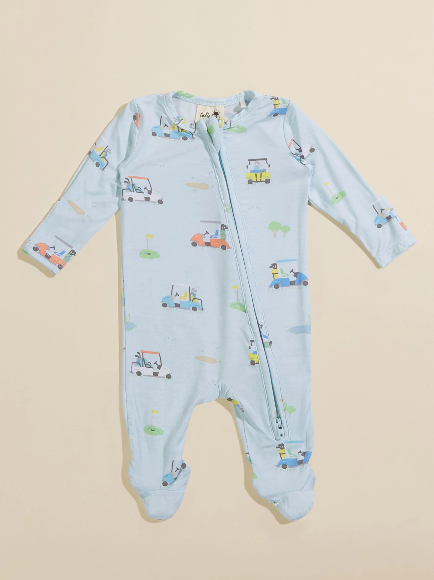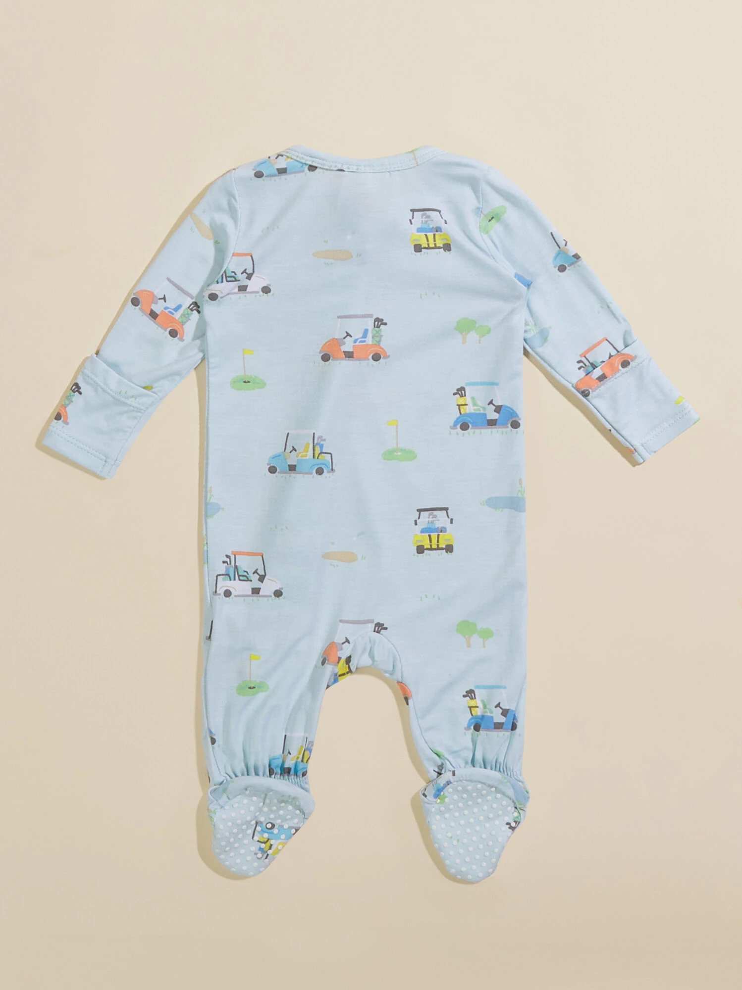 This ultra-soft sleeper combines the smooth texture of eco-friendly bamboo fabric, with the comfort of a footie style in this adorable golf inspired print. The fold-over cuffs ensure extra warmth while preventing accidental scratches, and the non-slip style feet will keep your babe safe while learning to be mobile!
