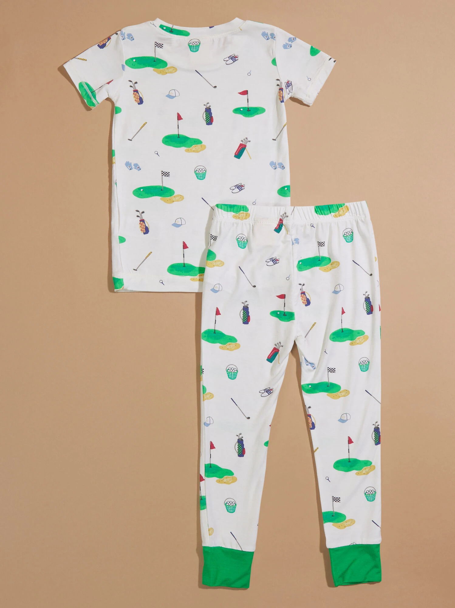 This cozy lounge set for your little one features adorable golf-themed designs, adding a playful touch to their wardrobe. Crafted from soft, breathable and eco-friendly fabric, it ensures comfort during playtime or naptime. Perfect for a relaxed day at home or casual outings, this set offers both style and sustainability for your babe.