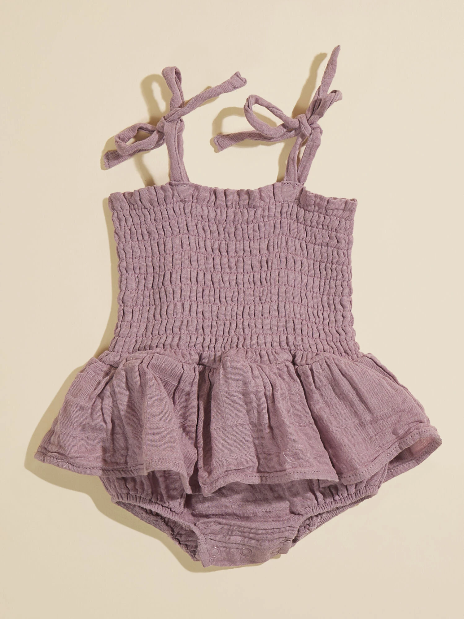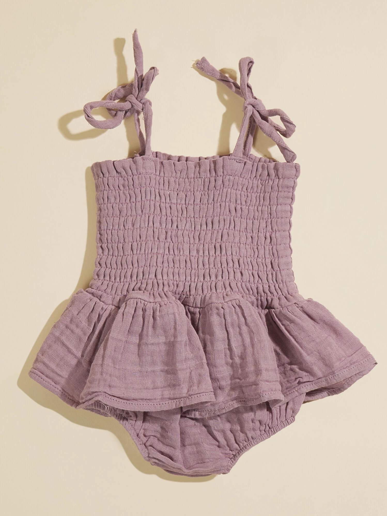 This all in one outfit is the cutest pick for your girl this season with the smocked bodice and elegant skirt layer. The adjustable tie straps allow a customizable fit, while the lightweight organic cotton material provides breathability and maximum comfort for your babe.