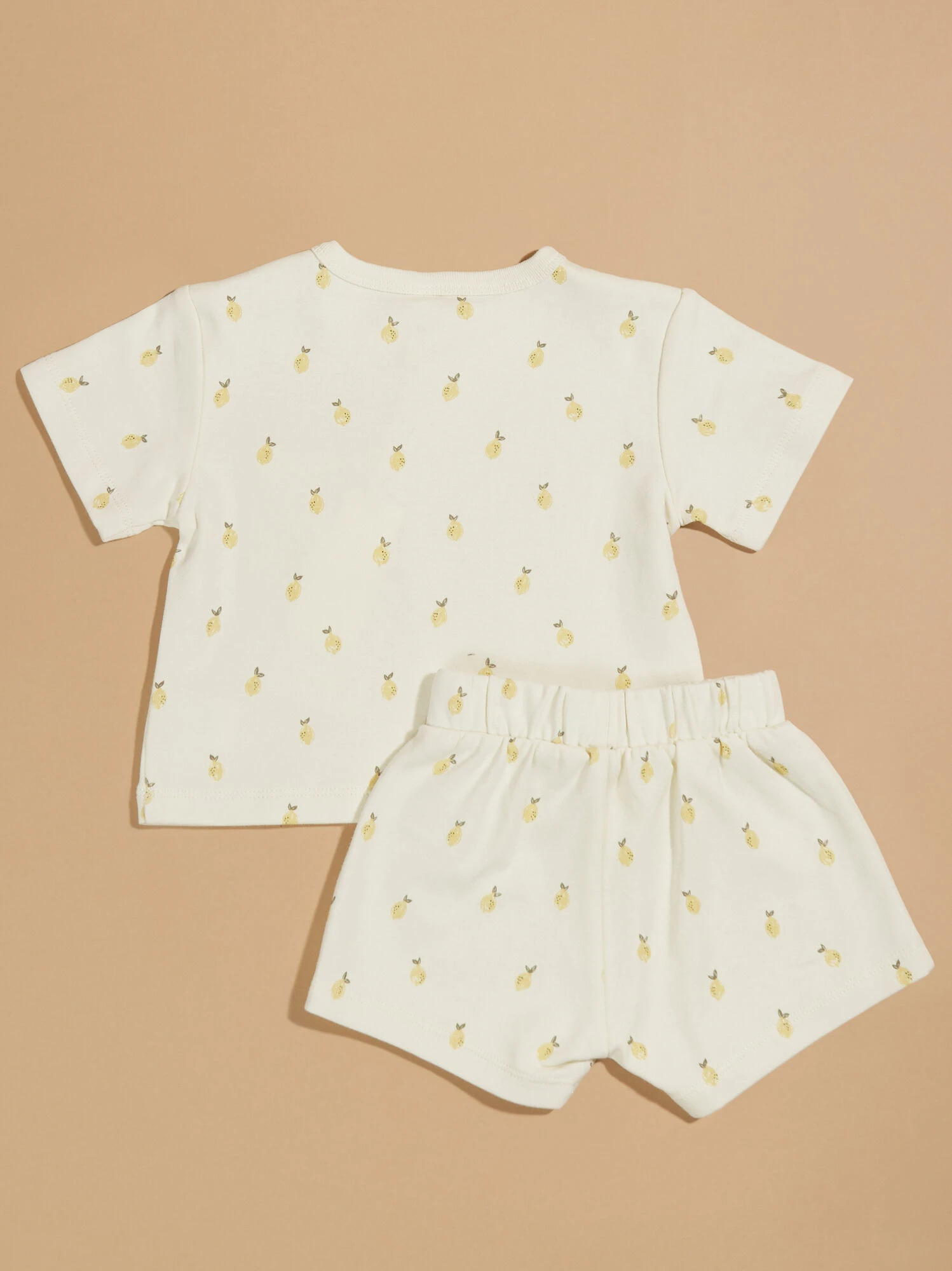 Add a sweet touch to your little one’s wardrobe with this delightful lemon print set. The top features a charming pocket with a shoulder button for quick changes, pairing perfectly with the adjustable drawstring shorts, ensuring a versatile and comfy ensemble for sunny adventures.