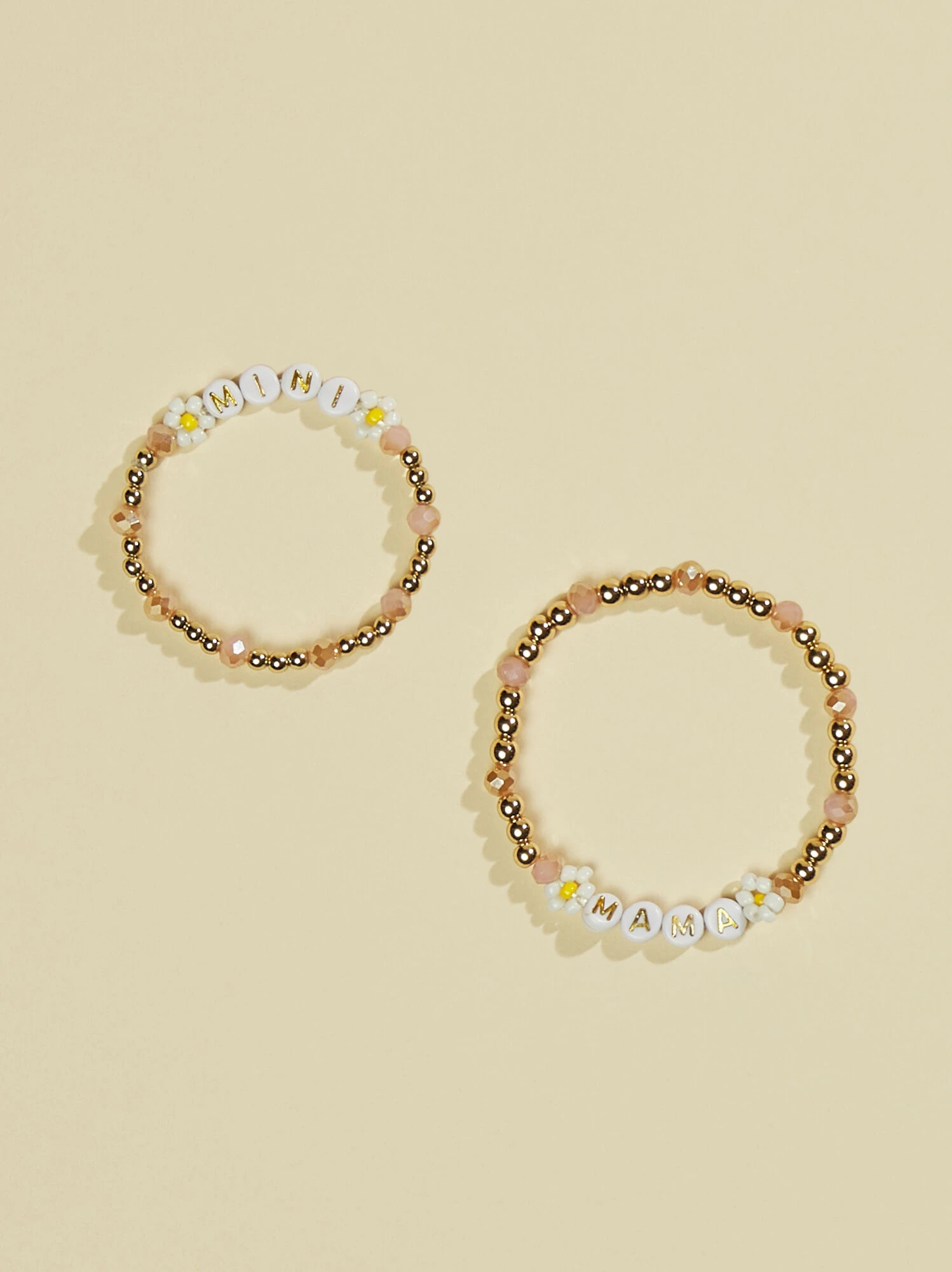 Get this dainty beaded bracelet set for a sweet matching moment with your little! The flower beading with mama and mini lettering will make this your girl’s favorite. The stretchy slip on style makes this the easiest accessory!