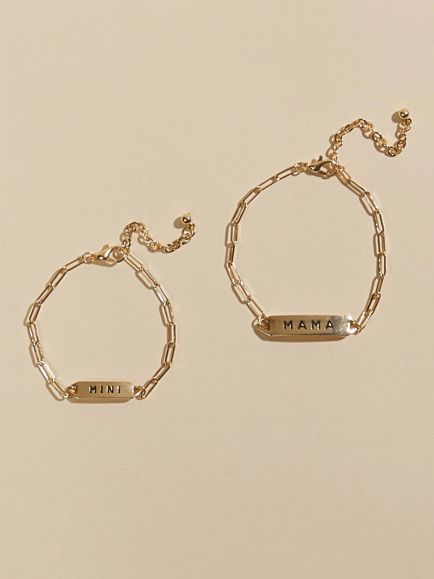 Add a gold touch to your look with this adjustable paperclip chain bracelet featuring a delicate daisy stamped tag. This set makes the perfect gift for you and your little to celebrate your mama, mini bond!