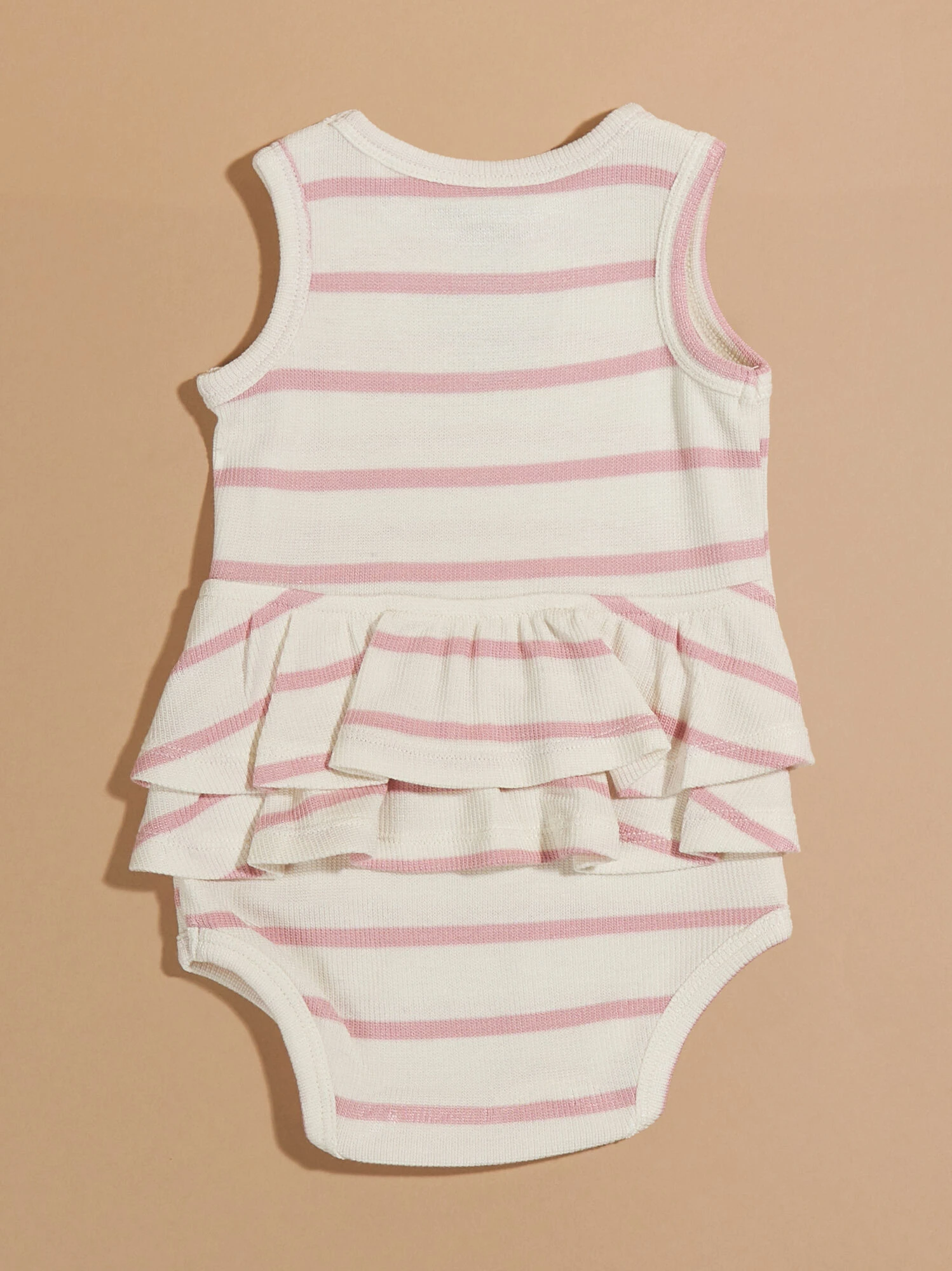 Your little girl will feel cozy and comfortable in this ribbed tank bodysuit, featuring ruffles on the back for a delicate touch of style and snaps for easy changes. Crafted from eco-friendly bamboo material, this one-piece is sure to feel soft and breathable against your babe’s skin.