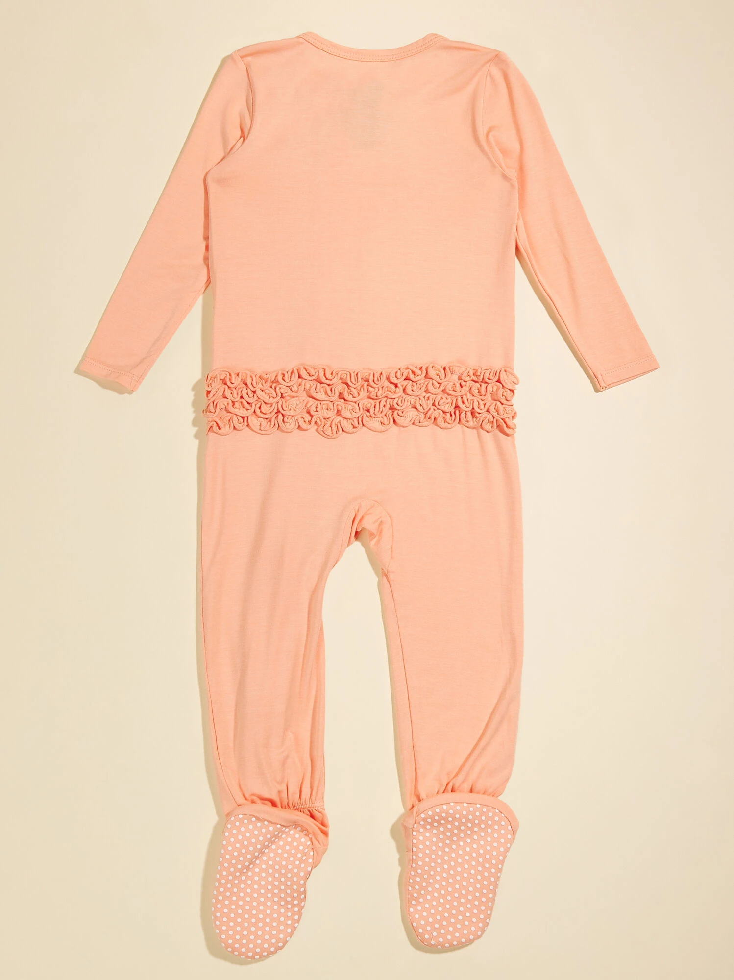 Crafted from eco-friendly bamboo material, this one-piece guarantees only the best for your babe with the buttery soft fabric and ultra lightweight feel for breathability. The tiered ruffle detailing adds the cutest touch to you little’s bedtime outfit, while the two-way zipper and fold over hand cuffs meet all your practical needs.