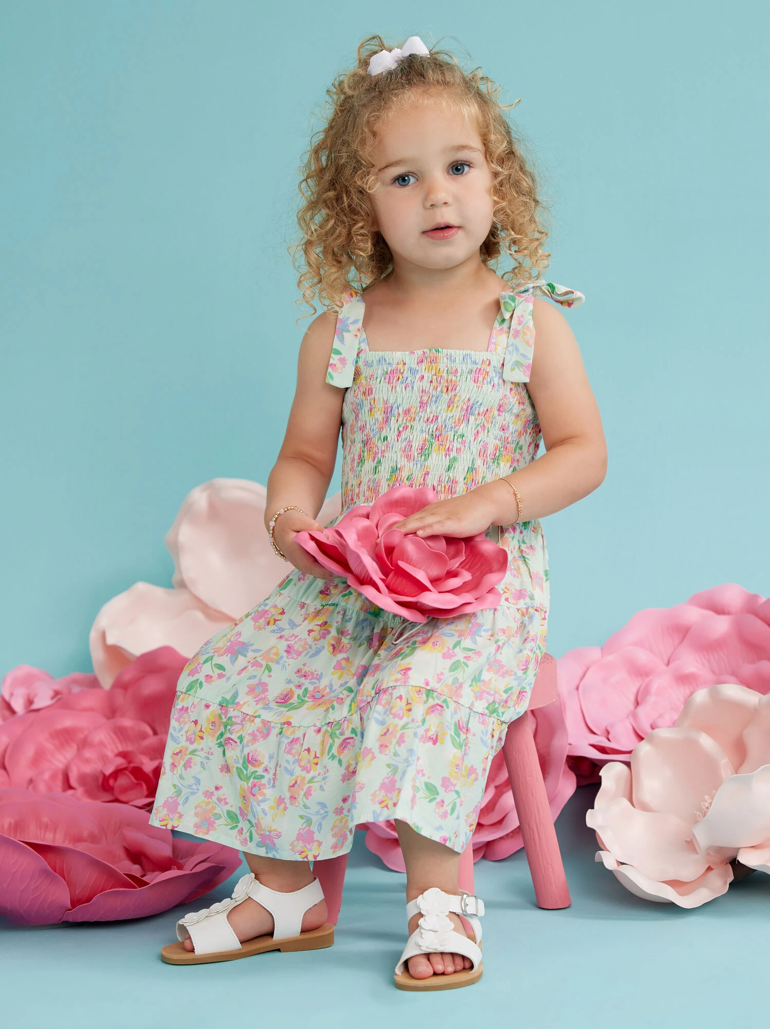 This floral dress for your little provides a soft stretch and flowy fit for an elegant style that moves with you. The playful summer design features a tiered skirt, smocked bodice, and adjustable tie straps, while the lightweight material provides breathability on sunny days. Grab the matching Peyton Floral Dress in your size for a cute twinning with mini moment.