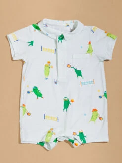 This adorable jumper features charming pickleball inspired designs, adding a sporty touch to your little one’s wardrobe. The eco-friendly bamboo material provides buttery soft comfort, while the convenient front pocket and preppy collared neckline, make this one-piece the cutest look for outings or lounging at home.
