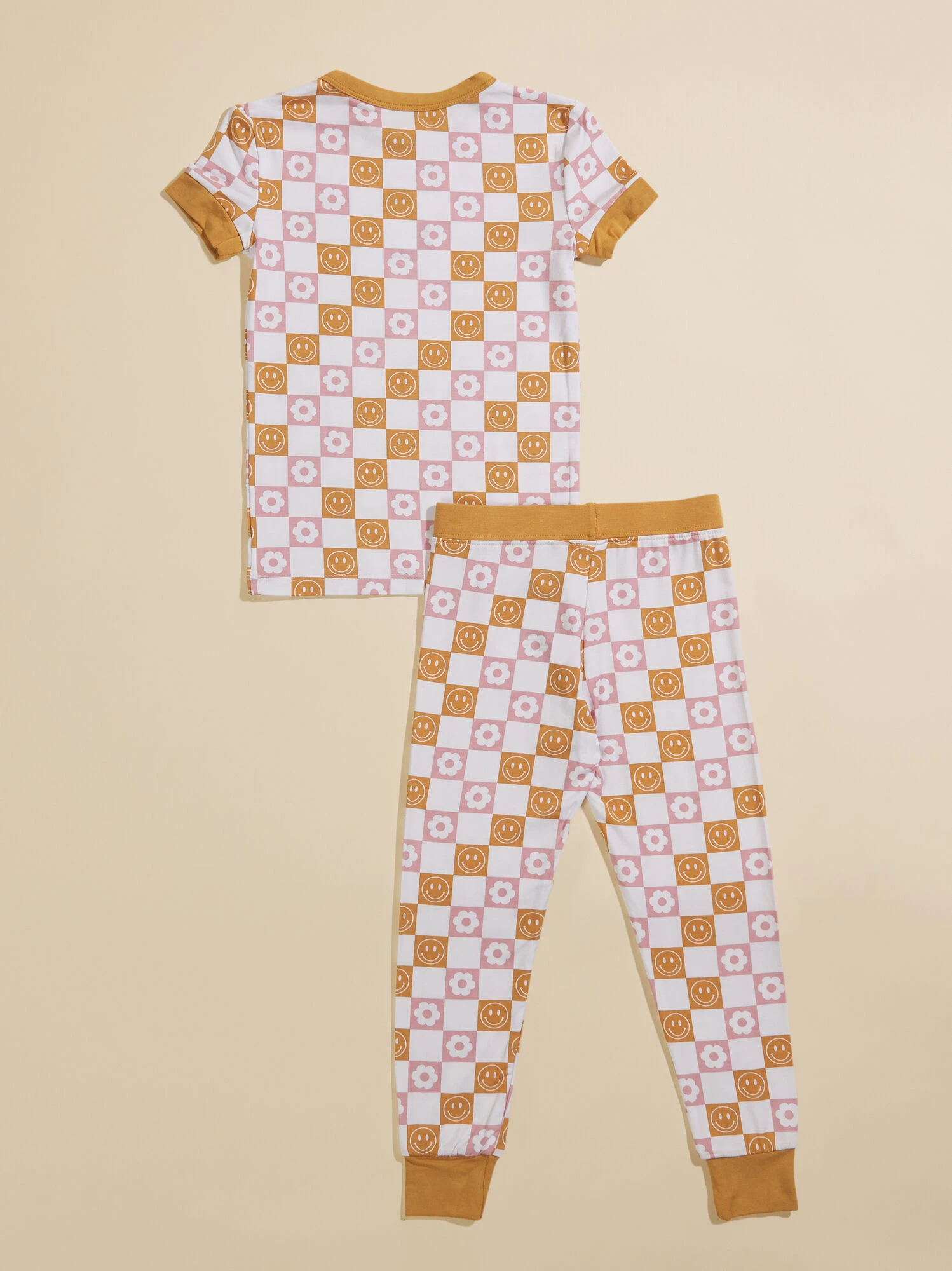 Your little groovy girl will look oh-so retro in this smiley and floral checkered print set. The eco-friendly material from bamboo is ultra soft and offers a lightweight and breathable feel for all day comfort to take your little from playtime to naptime.