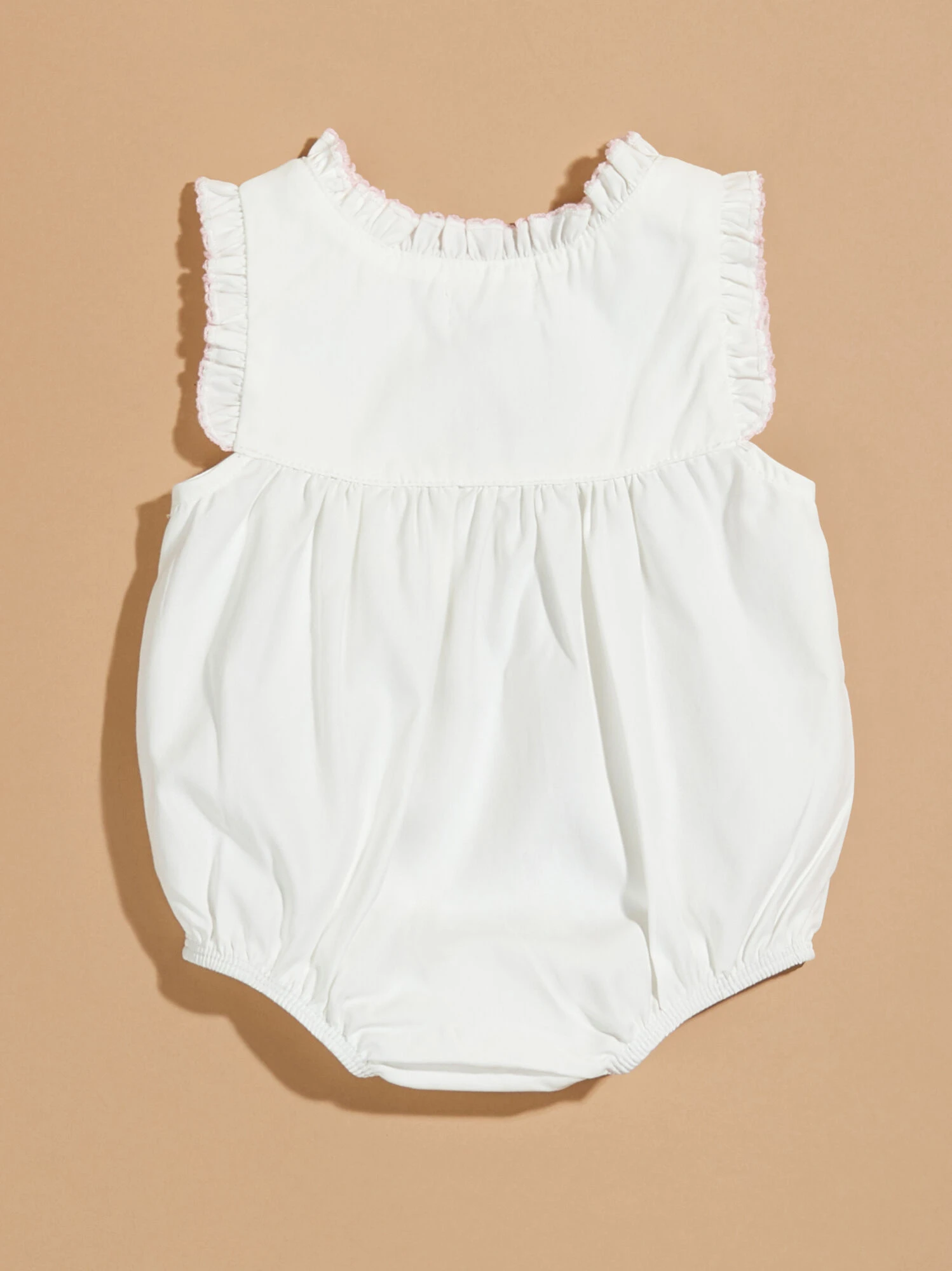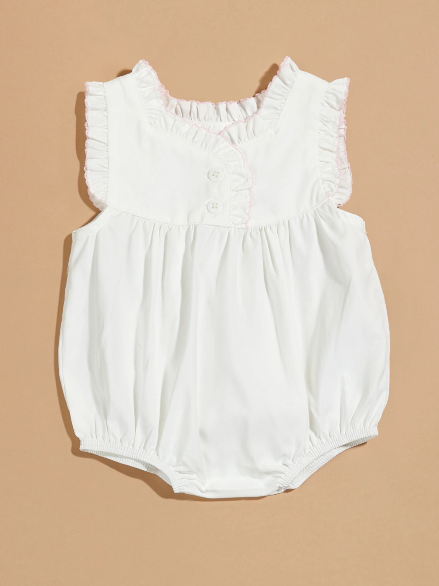 This adorable MudPie one-piece features playful ruffles and two buttons at the top. The snaps at the bottom ensure easy diaper changes. Perfect for picnics in the park, birthday parties, or any special occasion.
