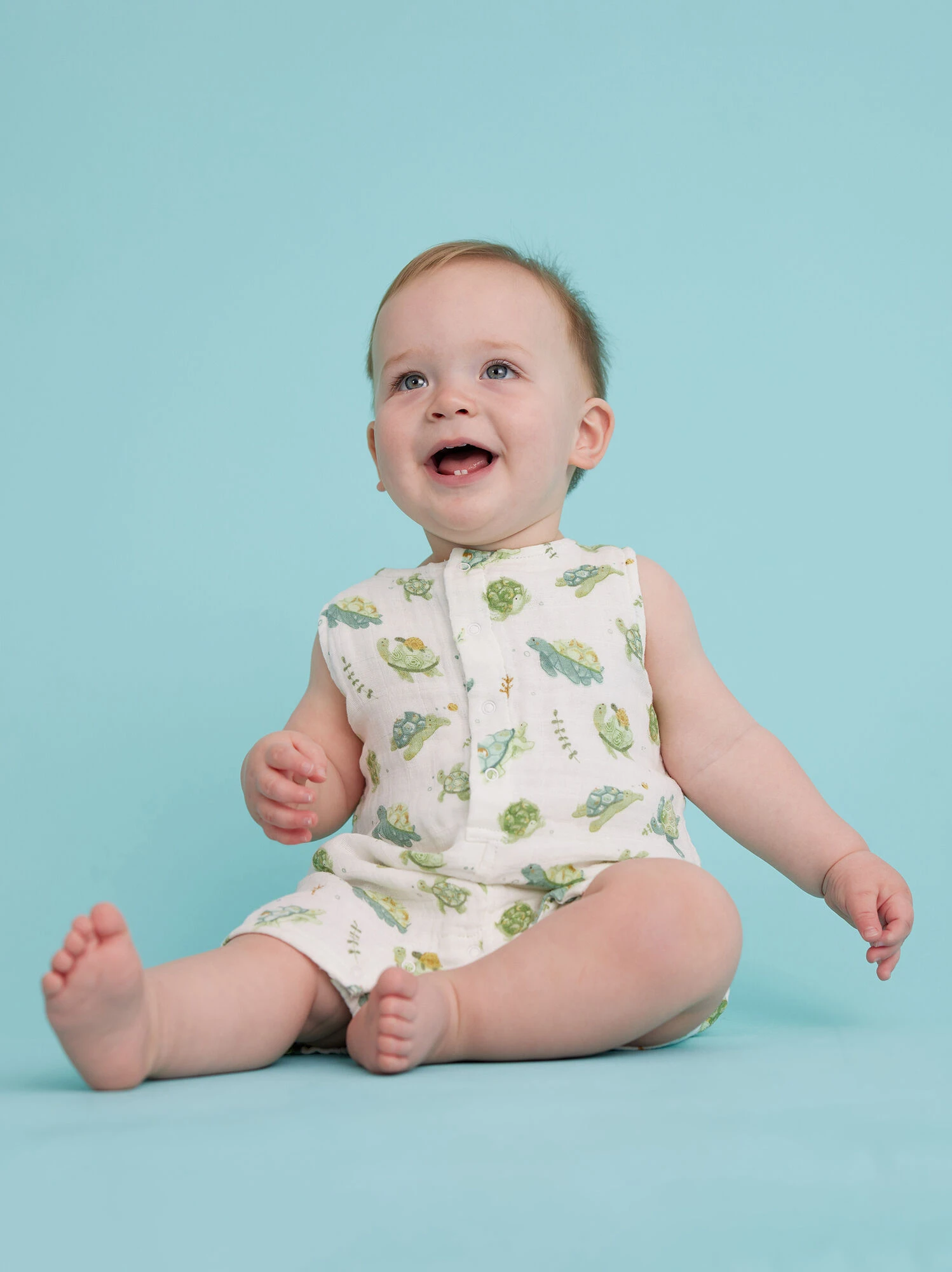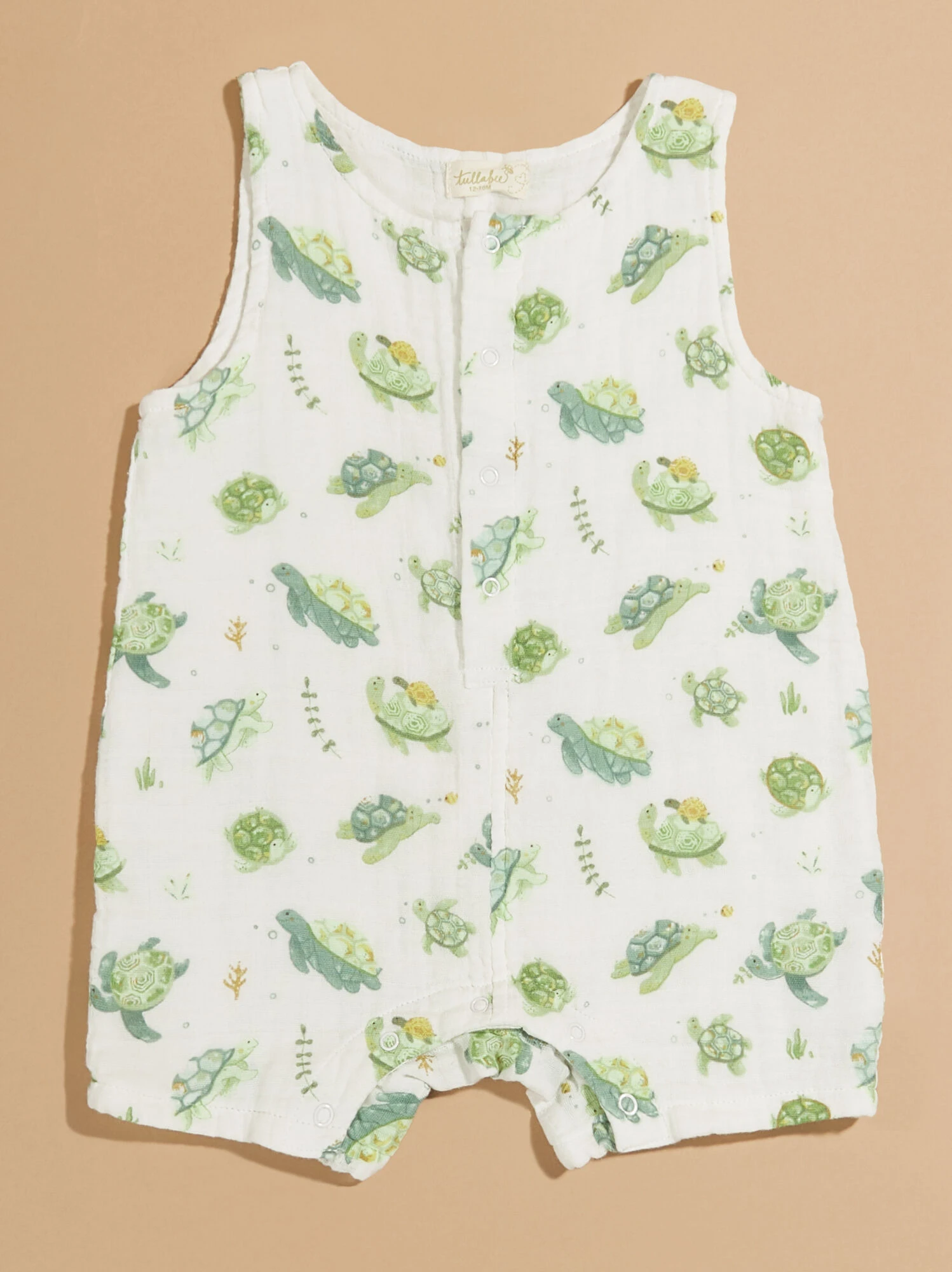 This all in one outfit perfectly blends comfort with the cutest style for your little, featuring a sea turtle print and a button neckline. The eco-friendly material offers lightweight breathability for all day comfort during any adventure with your babe.