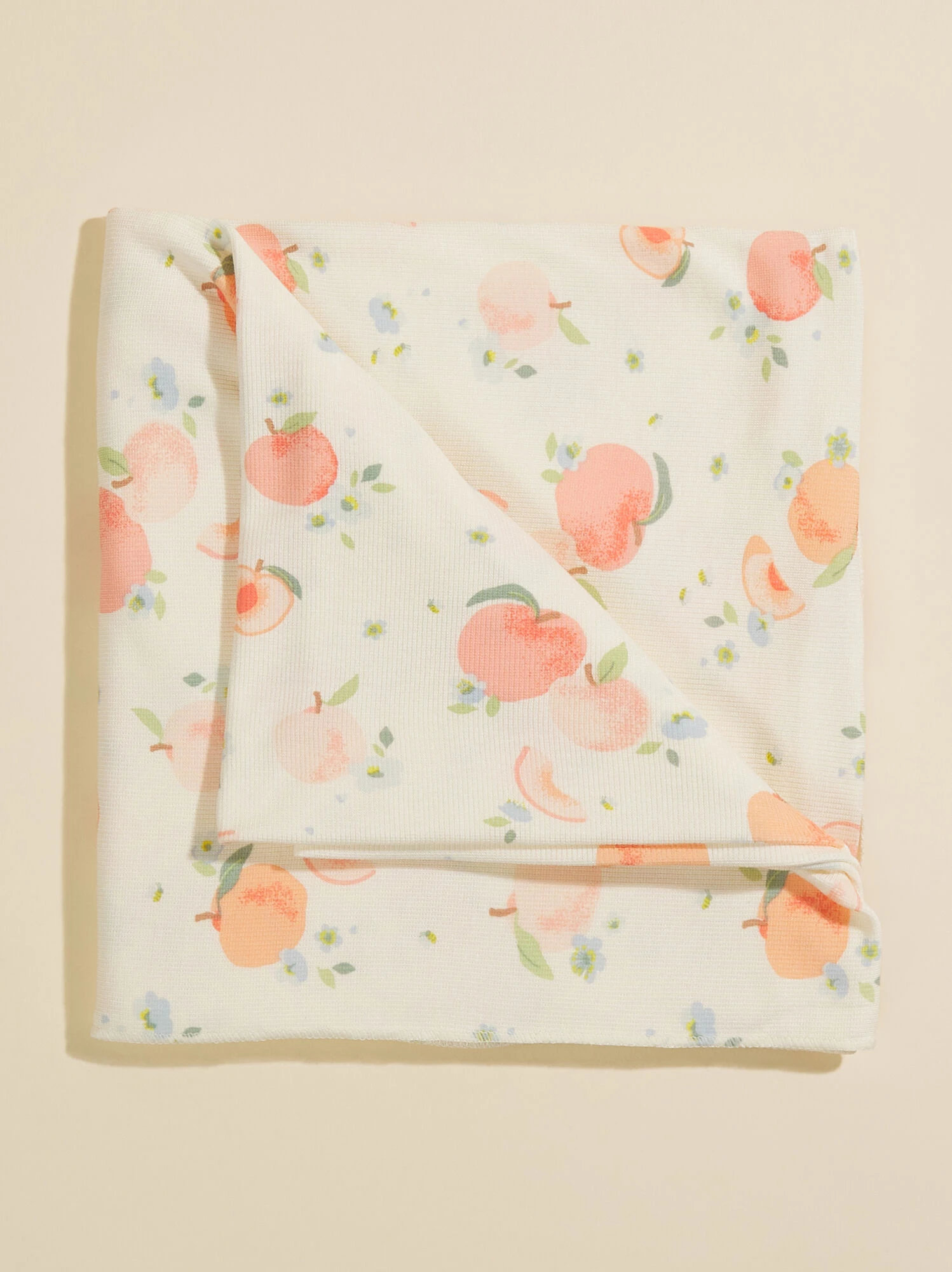 Add a sweet spring touch to your babe’s naptime with this swaddle featuring a peach print. The ultra lightweight and breathable fabric is carefully crafted from eco-friendly material that offers a buttery soft feel to ensure maximum comfort for your little one.