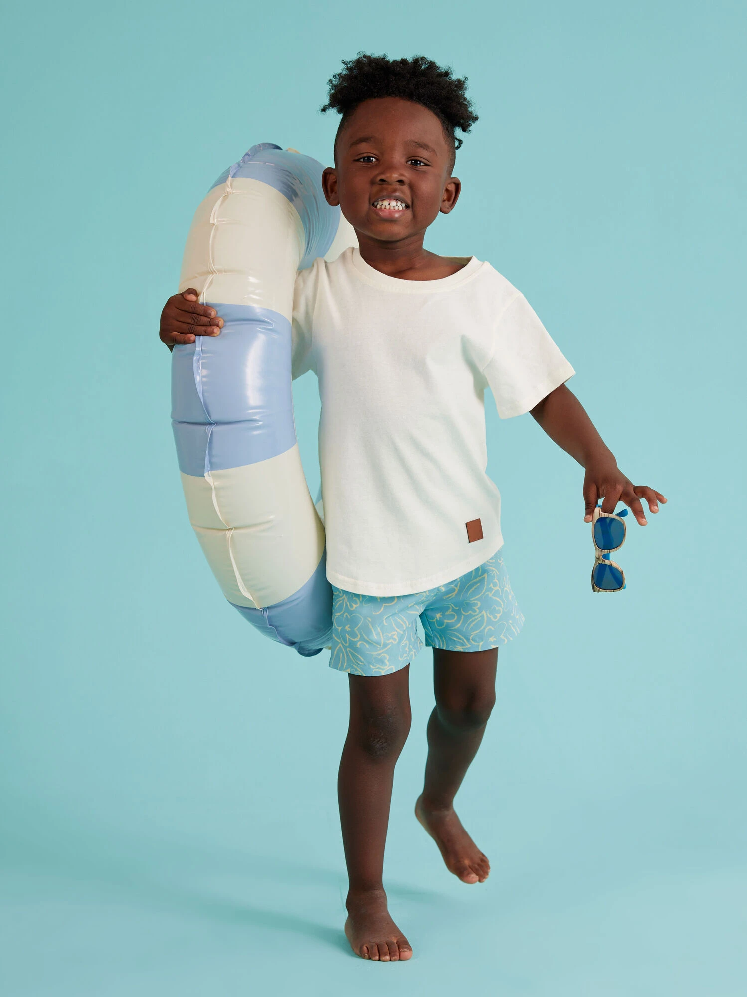 Dive into beachside fun with these swim trunks, complete with comfortable lining and an adjustable drawstring. These bottoms ensure both style and comfort for your little one’s summer adventures with the lightweight feel and tropical summer inspired print.