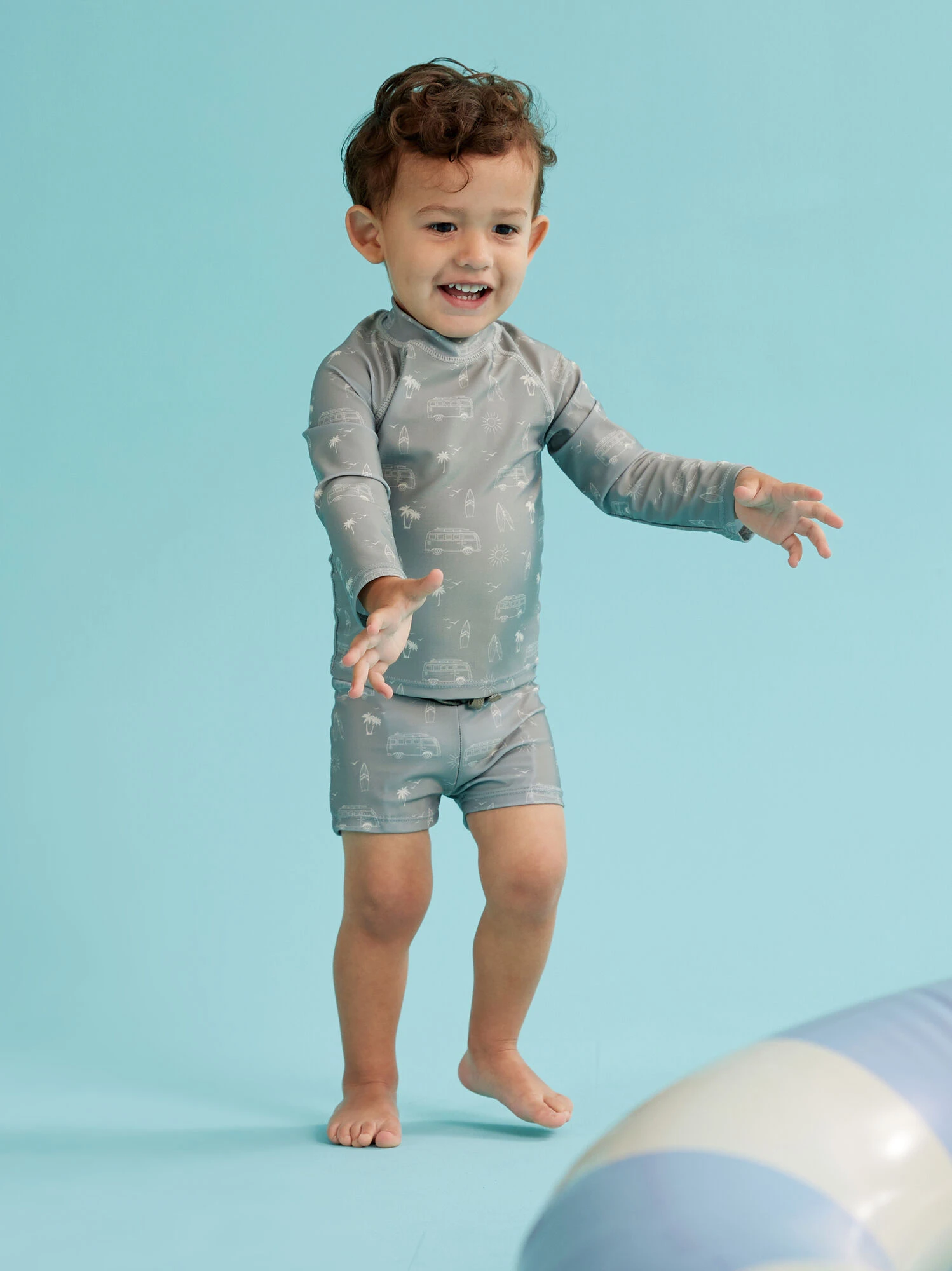 Get your little surfer dude ready to take on a day by the water with this buttery swim set offering maximum comfort and safety in the sun with a UPF 50 material. The surf inspired print adds a coastal look to your little’s swim fit, while the elastic drawstring waistband provides ease for dressing.