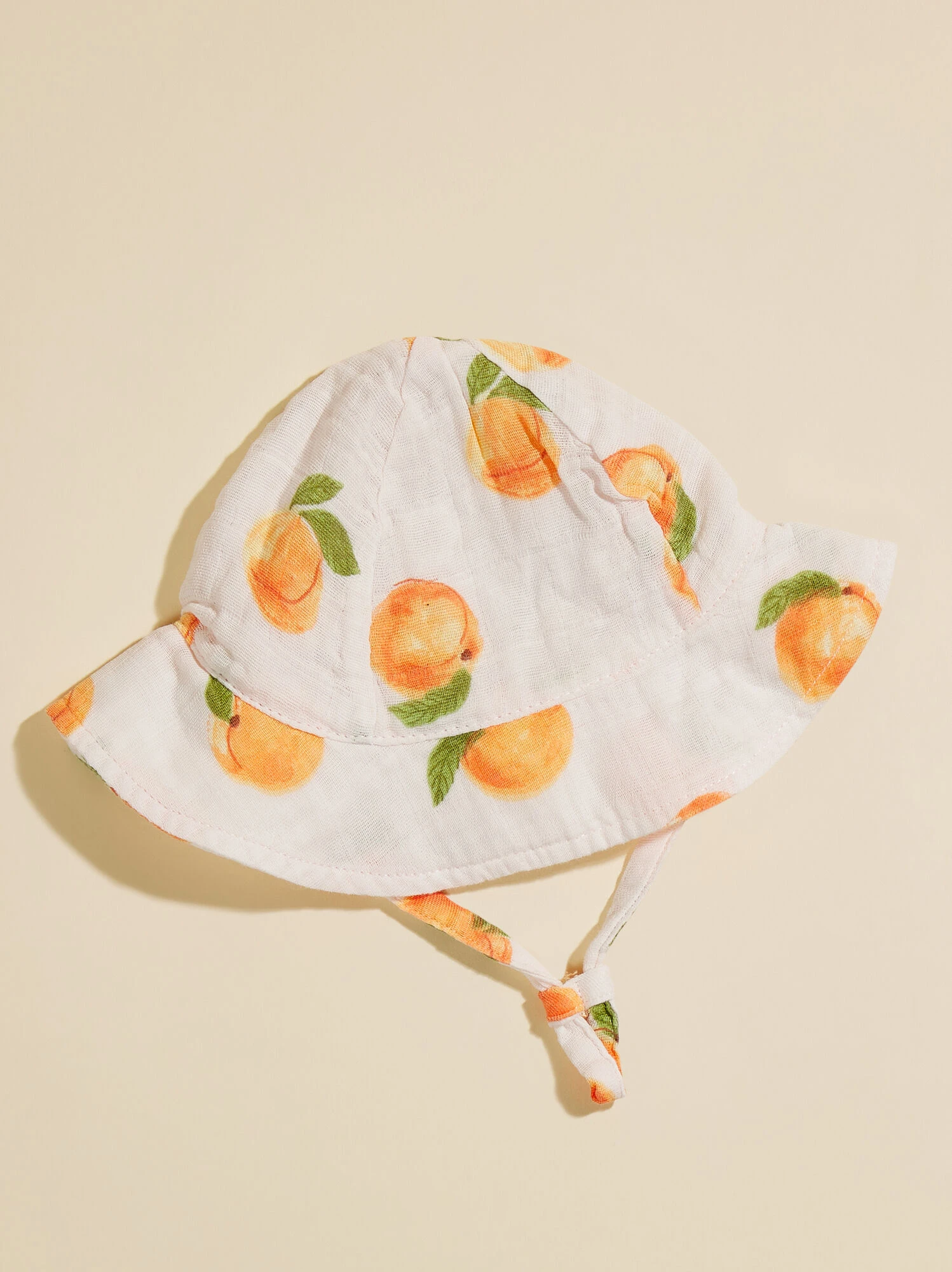 Get your girl ready for a day in the sun with this soft floppy hat, featuring an spring inspired peach print and adjustable chin strap. The ultra lightweight organic material will stay breathable during an all day wear on any outdoor adventure, while perfectly completing your little’s look with head to toe cuteness.