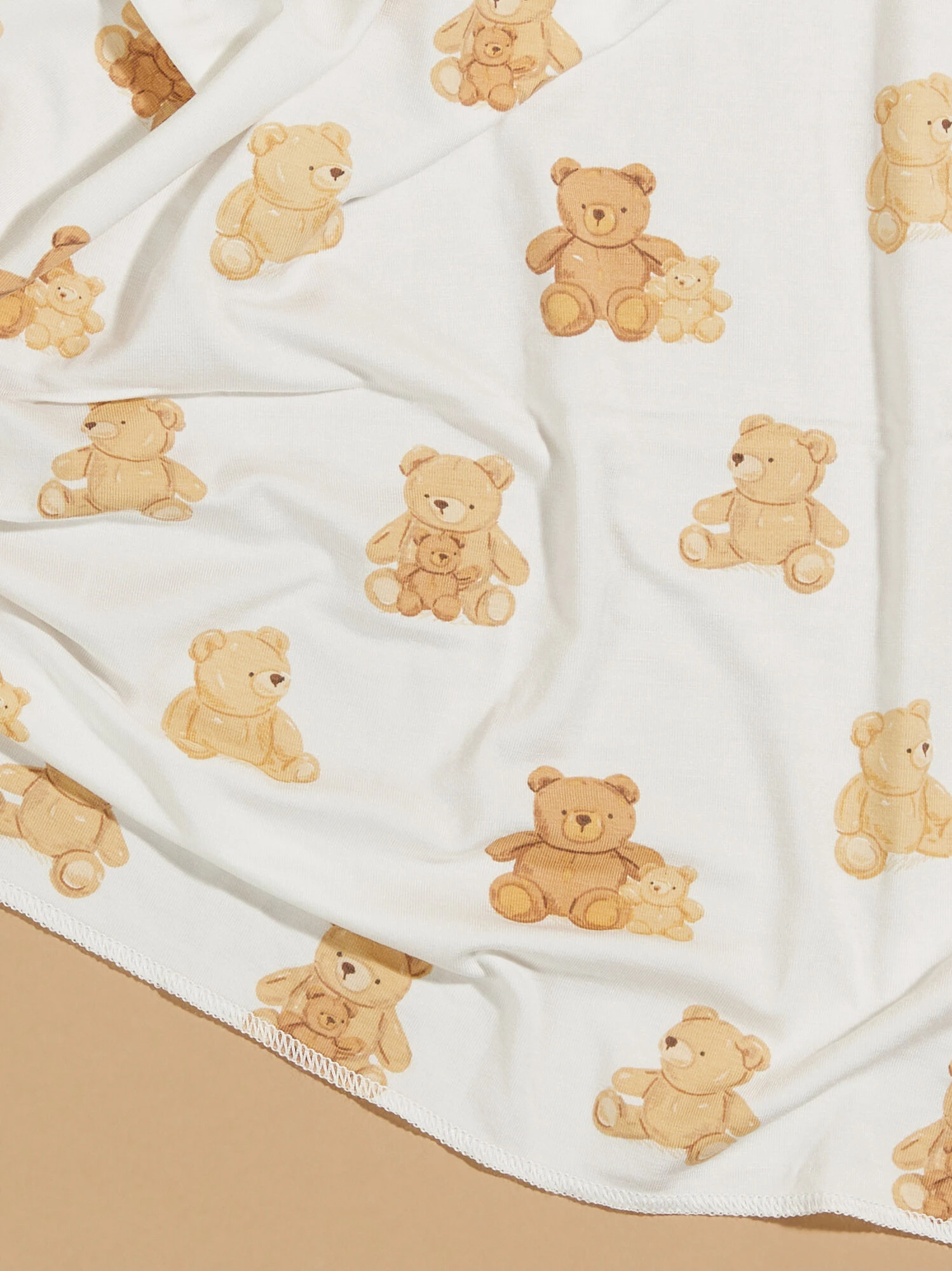 Wrap your little in ultimate comfort for naptime with this swaddle featuring a sweet teddy bear print. The ultra lightweight and breathable fabric is carefully crafted from eco-friendly bamboo material that offers a buttery soft feel to ensure a cozy feel for your little one.