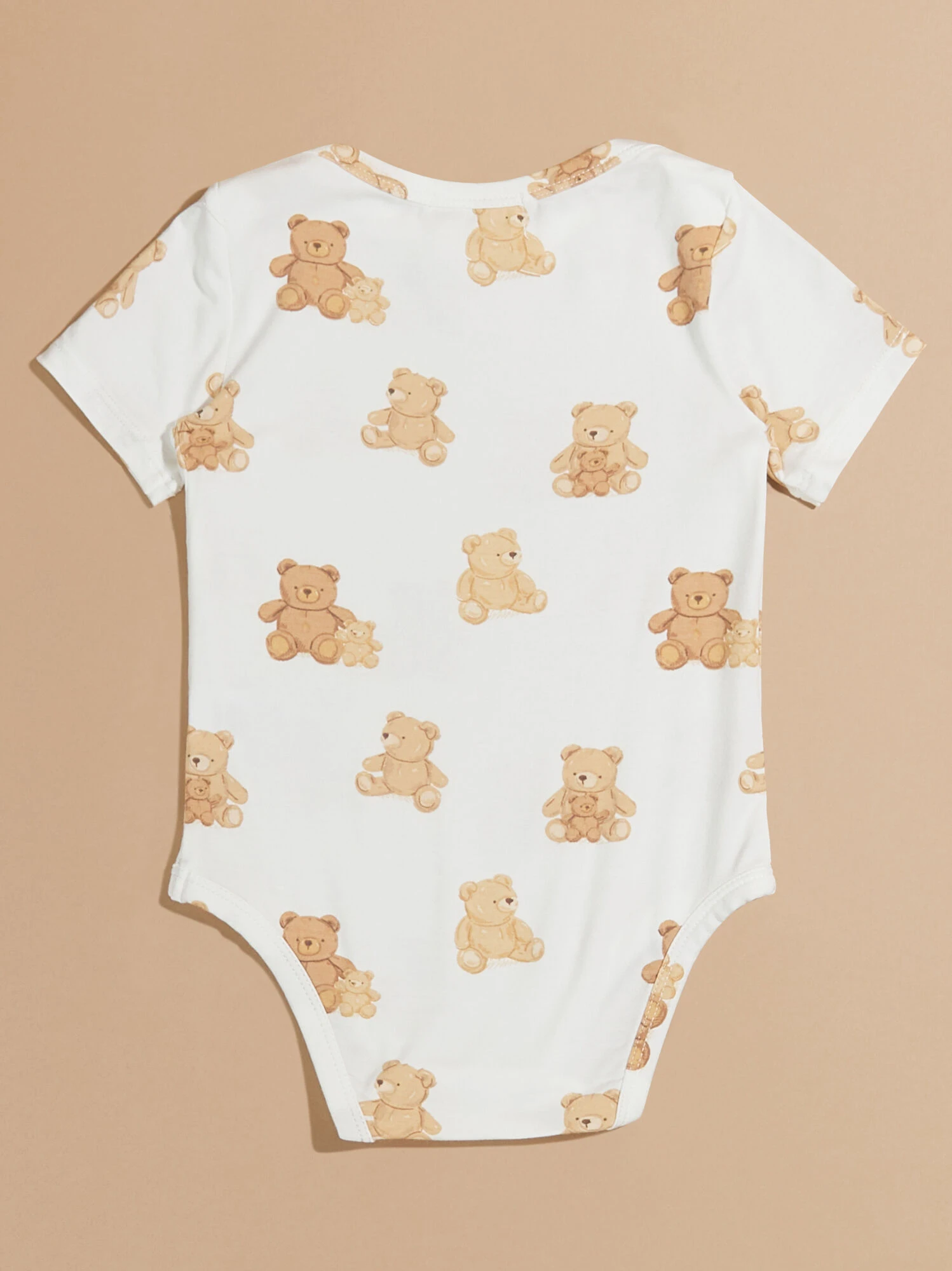 This buttery smooth one-piece provides a soft stretch for your babe to wear as versatile base layer paired with shorts for a day of play, or to wear as an easy all in one outfit. The teddy bear print adds the sweetest look, while the eco-friendly bamboo material offers lightweight breathability.
