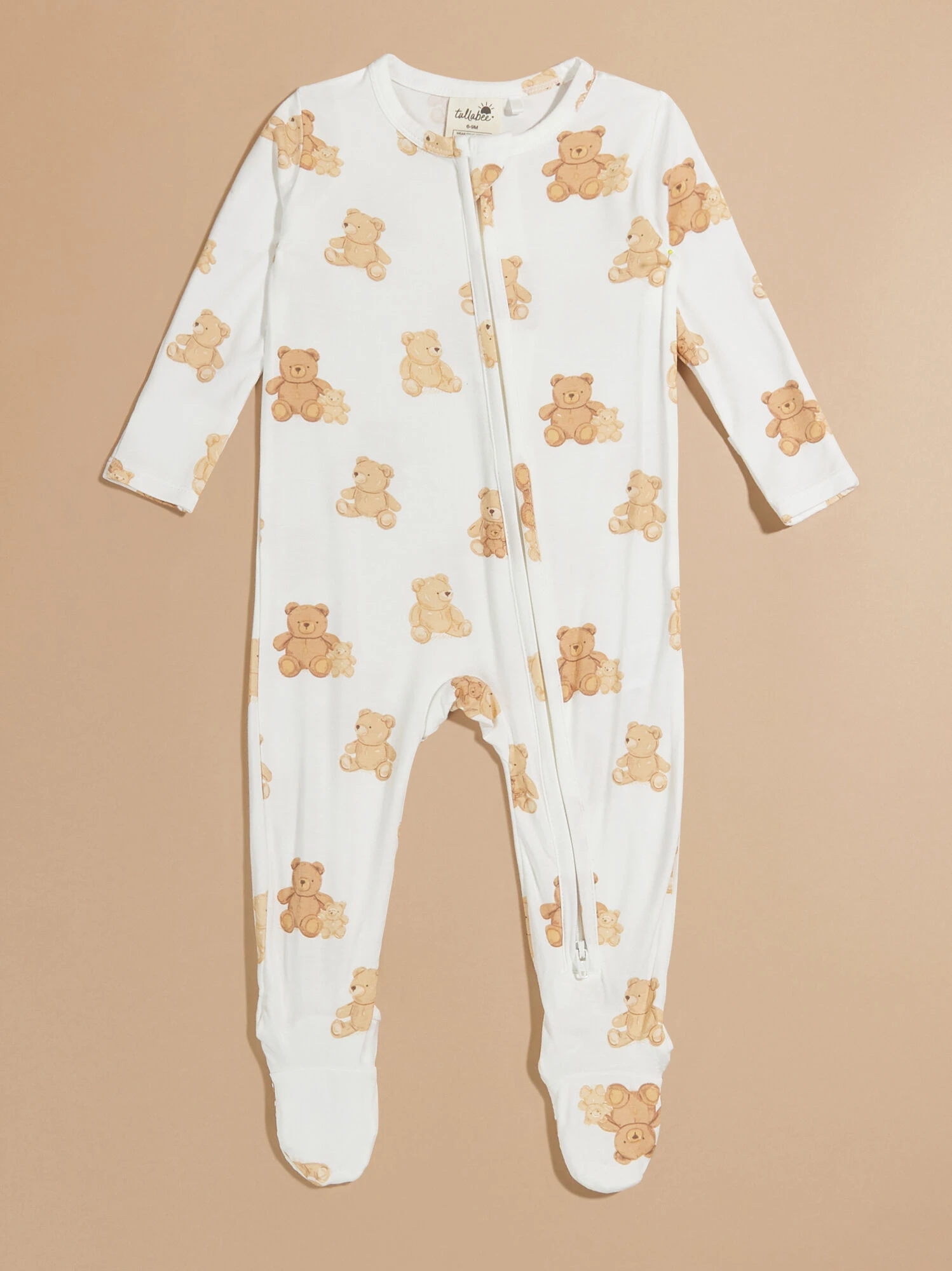 Get your babe ready for bedtime with this ultra soft footie, carefully constructed from bamboo materials to offer a breathable, eco-friendly outfit that prioritizes your little one’s comfort. The fold over hand cuffs, two-way zipper, and sweet teddy bear print are sure to make this a new go-to favorite!