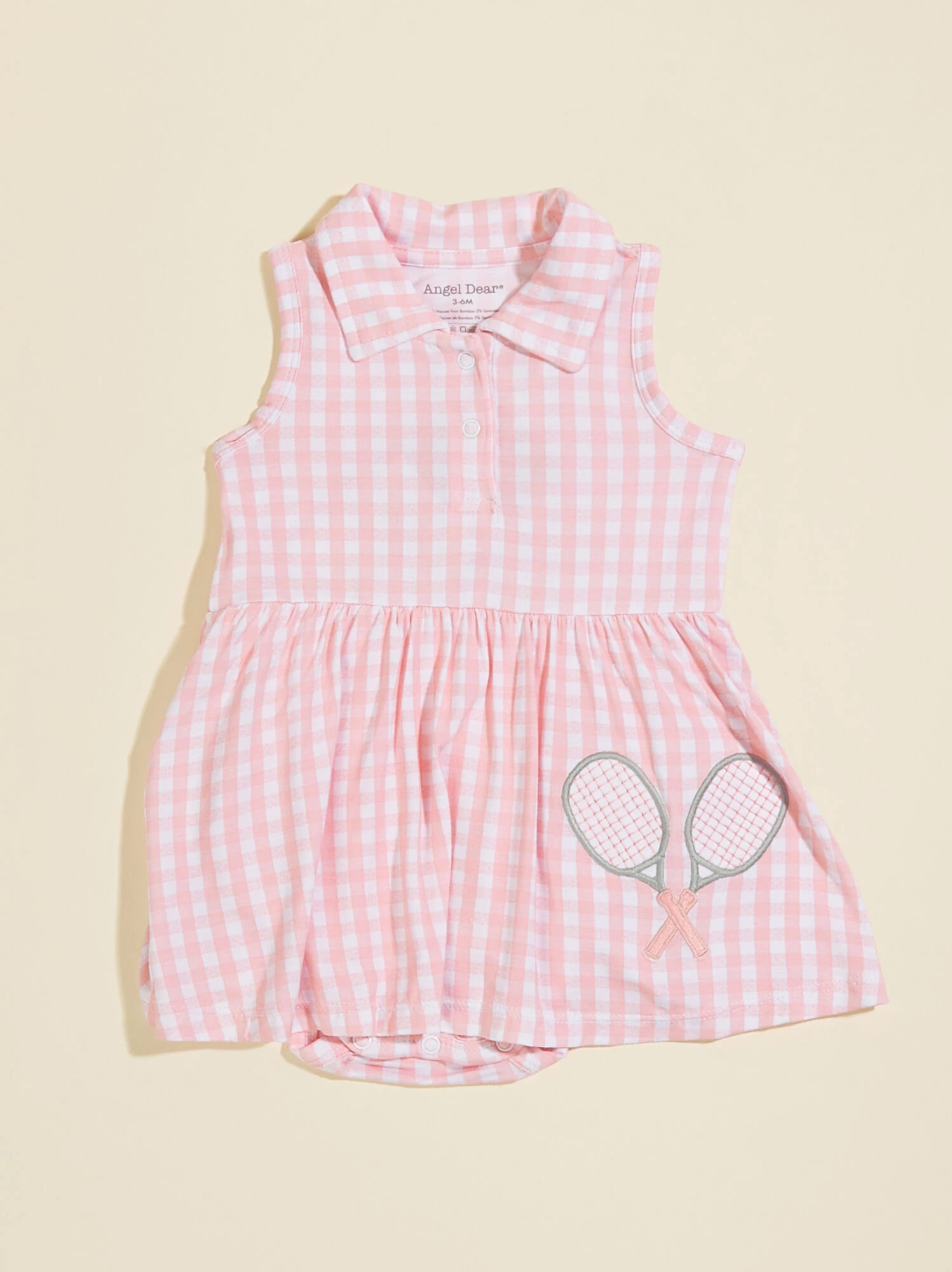 Add a little prep to your girl’s look this season with this tennis inspired collared outfit featuring a classic gingham print and tennis racquet applique. The one and done style makes this an easy on-the-go choice, while the buttery soft eco-friendly fabric from bamboo offers a lightweight and breathable feel to keep your little comfortable.