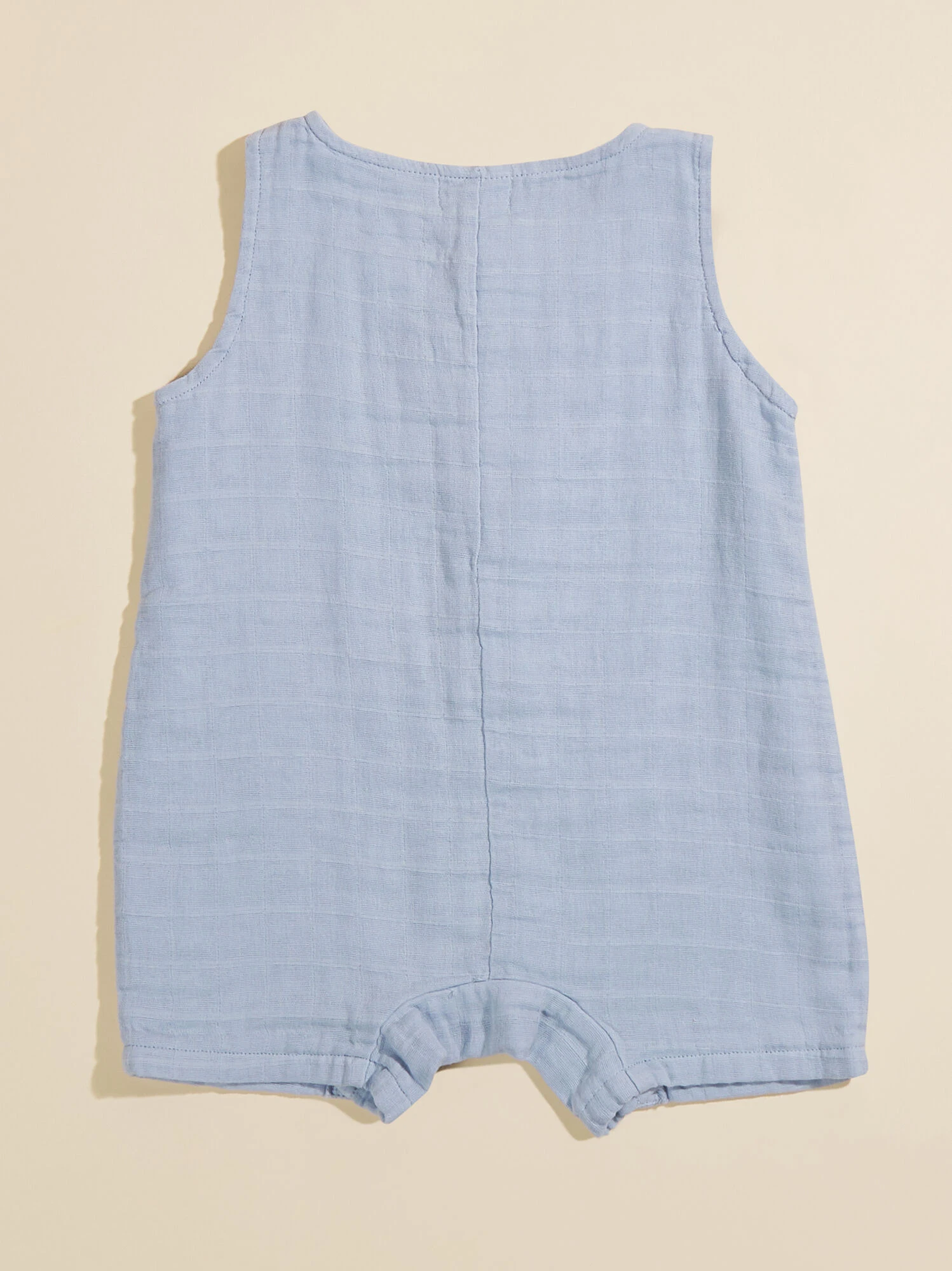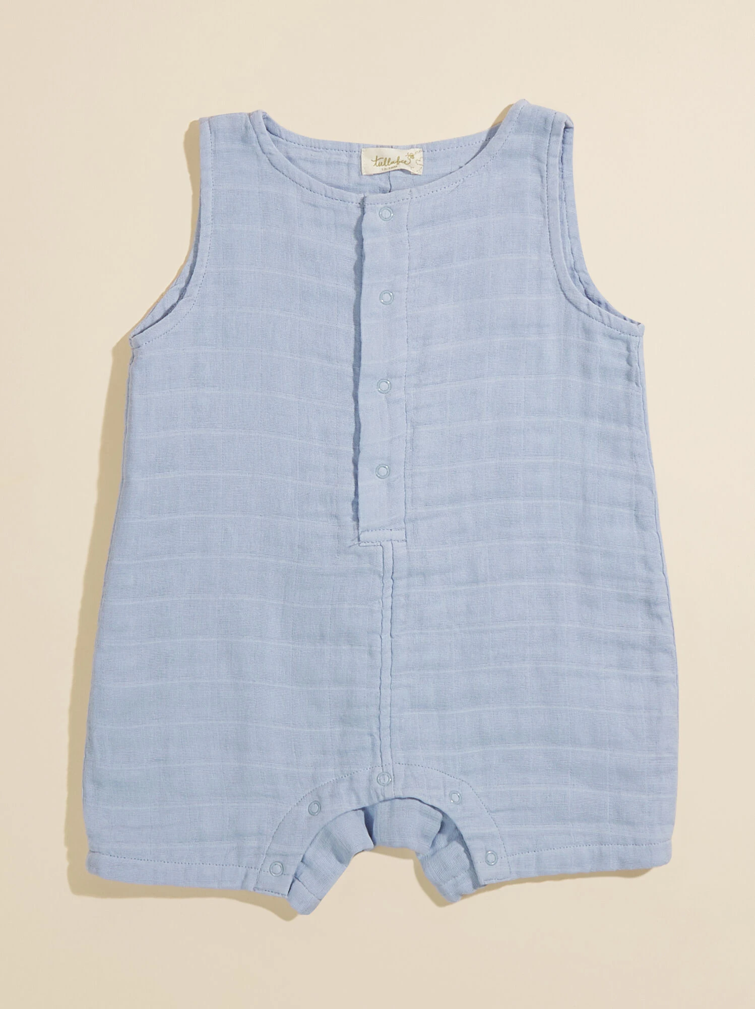 This all in one outfit makes getting your babe ready on busy days effortless with inseam and center seam snaps for easy dressing. The lightweight eco-friendly fabric is carefully constructed from organic material offering breathability during a day of play.