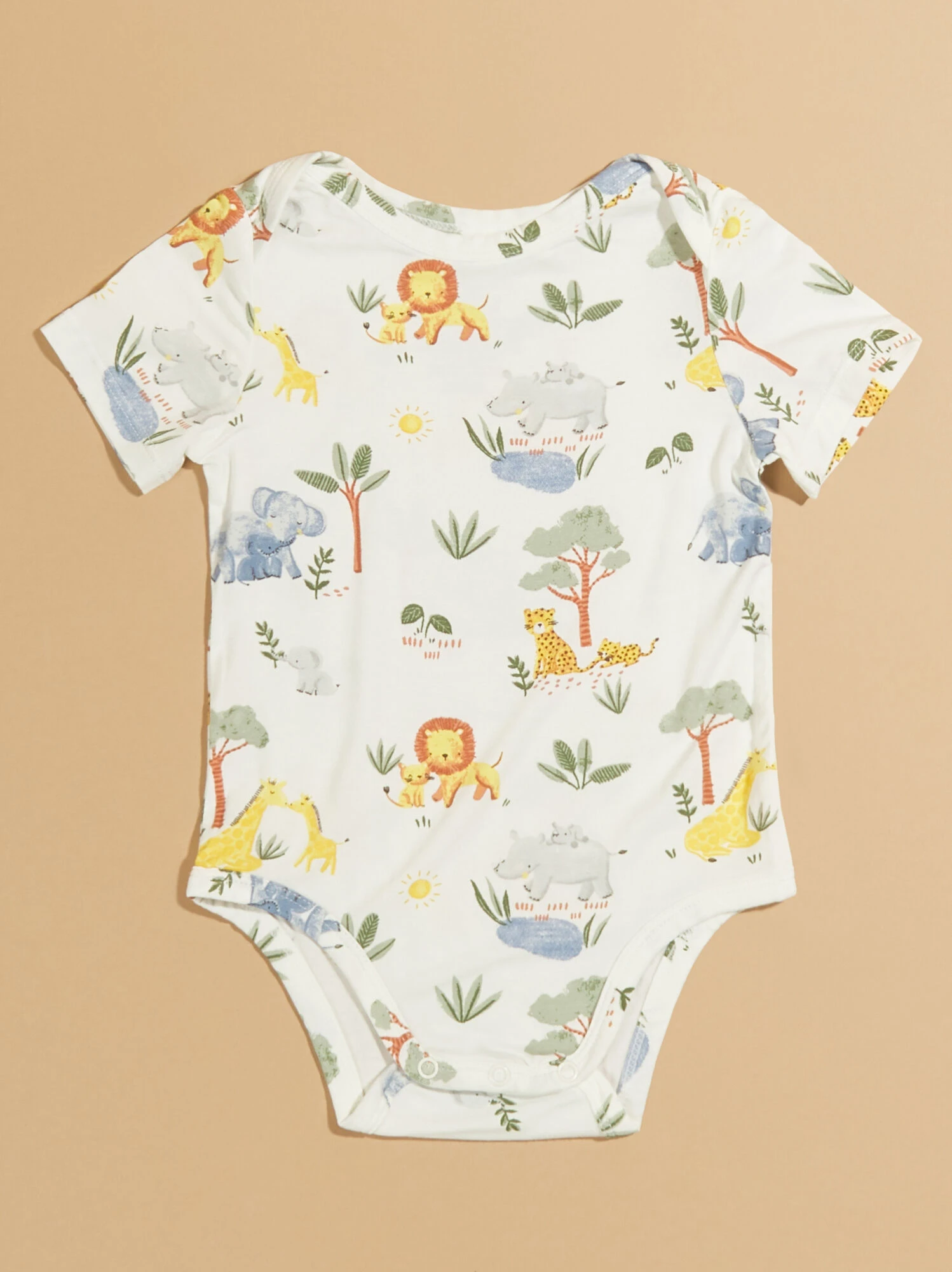 Dress your little explorer in style with our safari bodysuit, featuring adorable safari animals printed across the soft fabric. This charming bodysuit is designed with convenient buttons at the bottom for easy diaper changes, ensuring both comfort and practicality. Made with eco-friendly materials, let your baby embark on adventures in this outfit, perfect for playtime.