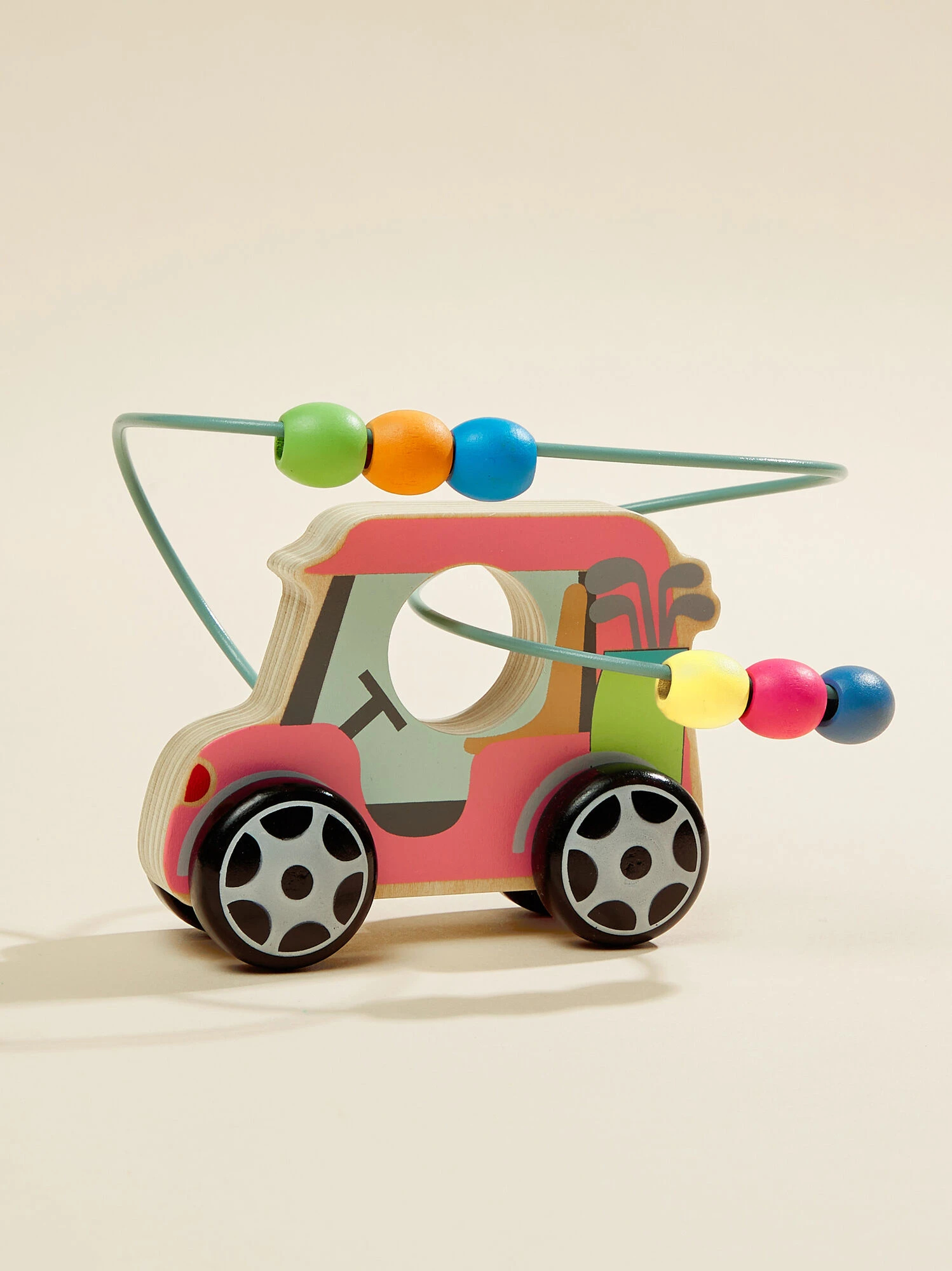 Give your little an extra entertaining toy with sliding beads and rolling wheels to work all their motor skills! This bright pastel colored golf cart will be the new favorite.